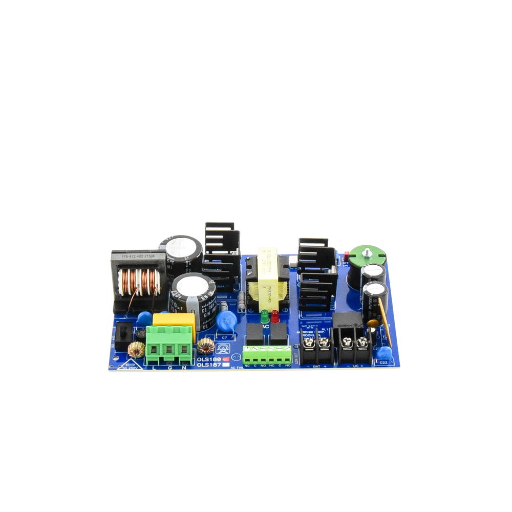 La fuente de alimentación/cargador OLS180 convierte una entrada de 115 V CA, 50/60 Hz en una salida de 12 V CC o 24 V CC a una corriente de suministro continuo de 6 A (consulte las especificaciones). Esta unidad tiene una amplia gama de aplicaciones para control de acceso y accesorios de sistemas de seguridad que requieren energía adicional.