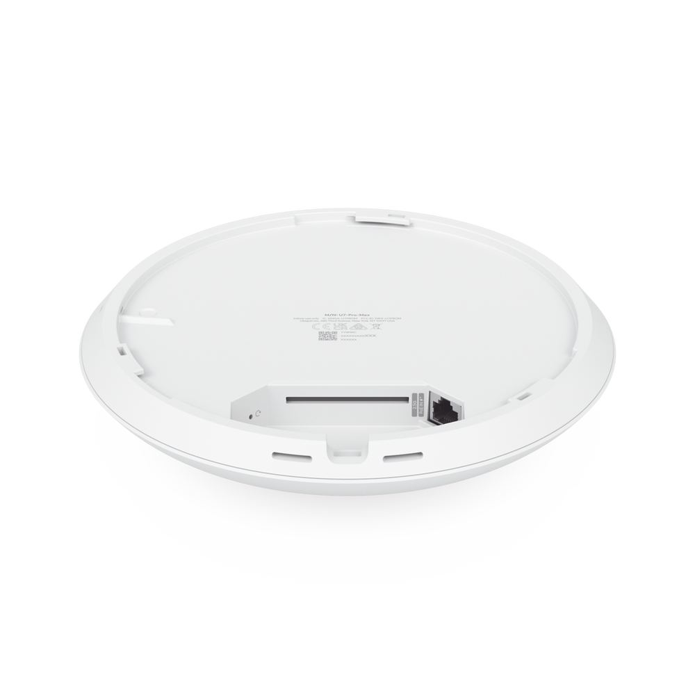Access Point UniFi U7 Pro Max con 8 streams espaciales / para Techo o Pared / Tribanda (2.4/5/6GHz) / Radio Dedicado a Escaneo Espectral / Puerto 2.5 GbE / +500 clientes / POE+ (No incluido) / Para alta densidad de usuarios en escenarios exigentes