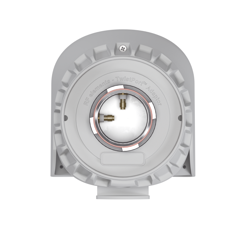 El adaptador TwistPort adapta radios de terceros al conector de guía de onda TwistPort patentado por RF elements®. La integración de la radio es suave y no requiere herramientas. Hacer que las radios de terceros sean compatibles con TwistPort permite utilizar la radio con cualquier antena TwistPort.