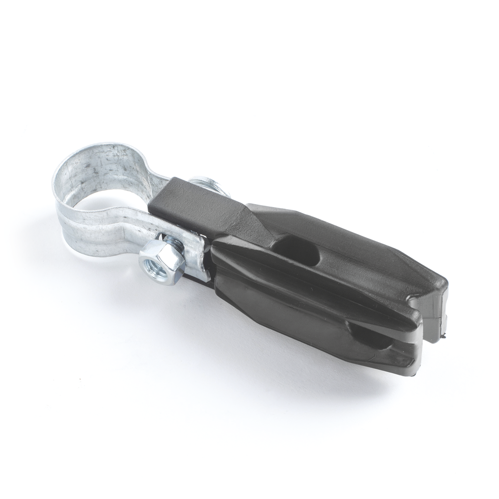 Aislador de paso o esquina con abrazadera incluida de 1 Pulgada para uso en tubería de malla ciclónica.