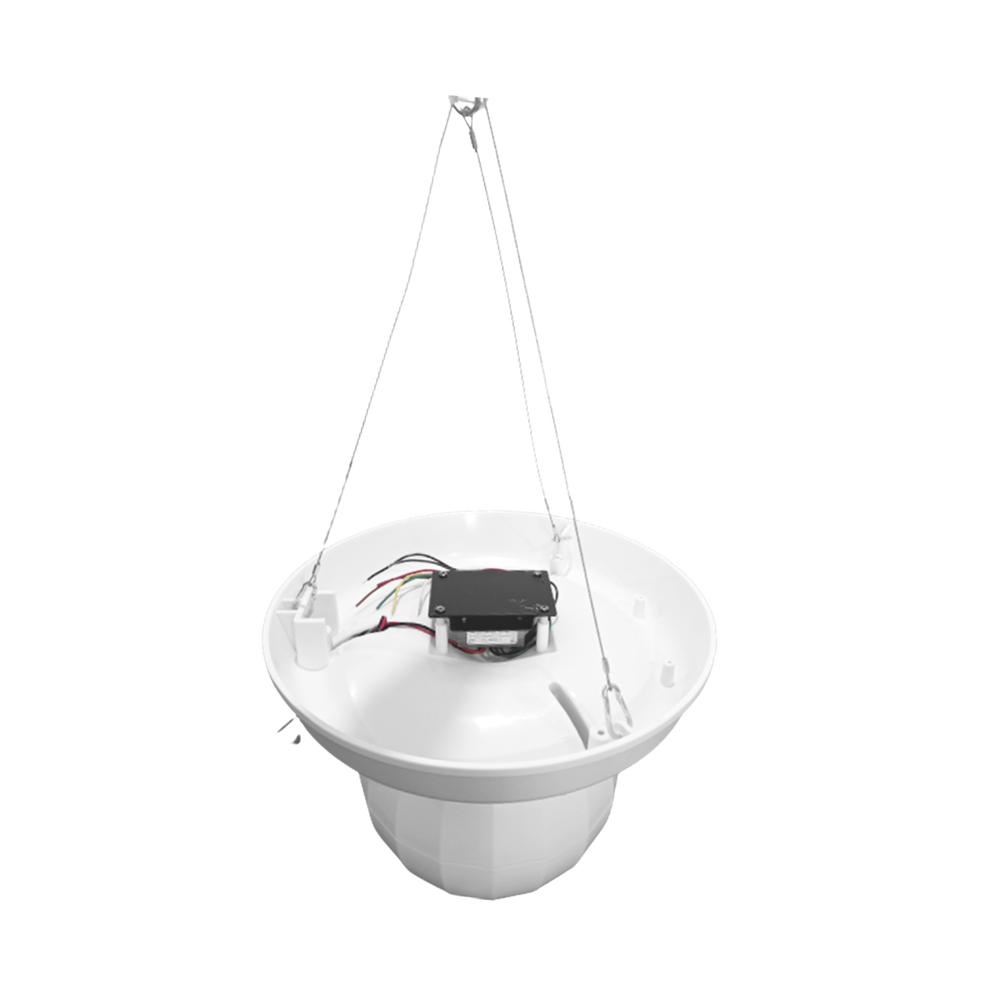 Es un altavoz colgante con un transformador incorporado de 70v / 100v. La tecnología del transformador reduce las pérdidas de línea en distancias más largas y permite una fácil conexión en paralelo de múltiples altavoces. Es adecuado para uso en techos altos. Tiene un amplio ángulo de dispersión de sonido de 360° ideal para lugares abiertos que requieren mensajes inteligibles a grandes distancias.