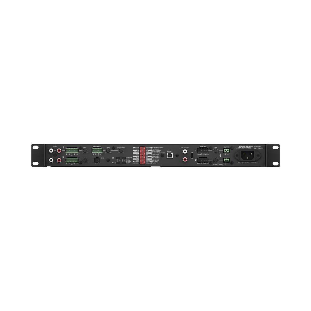 En el caso de aplicaciones de música en primer y segundo plano y de paginación, los amplificadores de zona integrados Bose® FreeSpace® IZA 2120-HZ mejoran la experiencia de audio cuando se usan los altavoces FreeSpace®. Los amplificadores FreeSpace IZA están optimizados para aplicaciones comerciales, cuentan con un ecualizador de altavoz seleccionable para enriquecer la calidad del audio, buscapersonas Opti-voice® para ofrecer una clara inteligibilidad de la voz y proporcionar transiciones uniformes, y el ecualizador Dynamic EQ para garantizar música equilibrada y completa a cualquier nivel de volumen