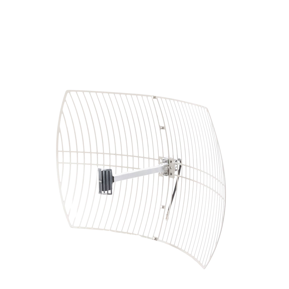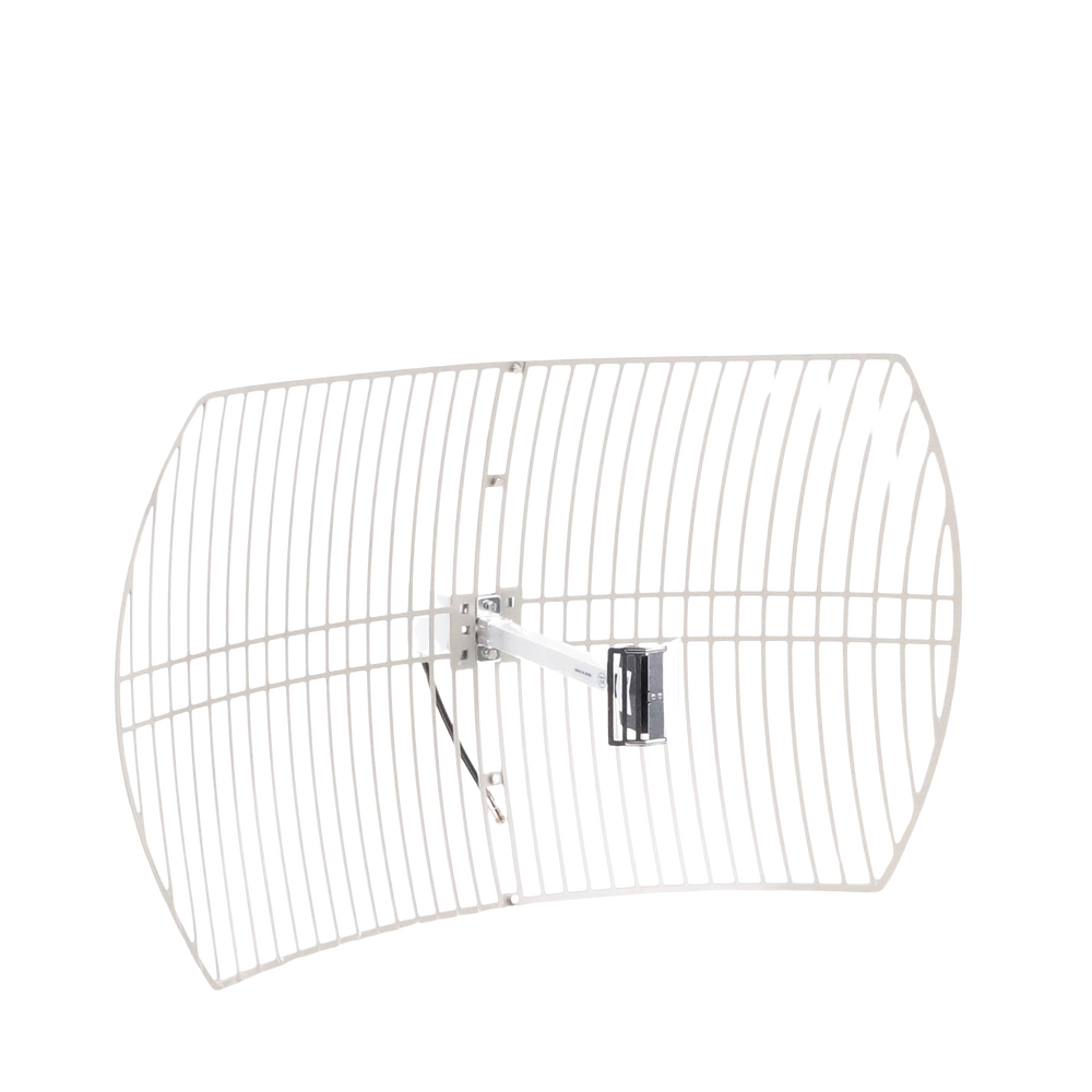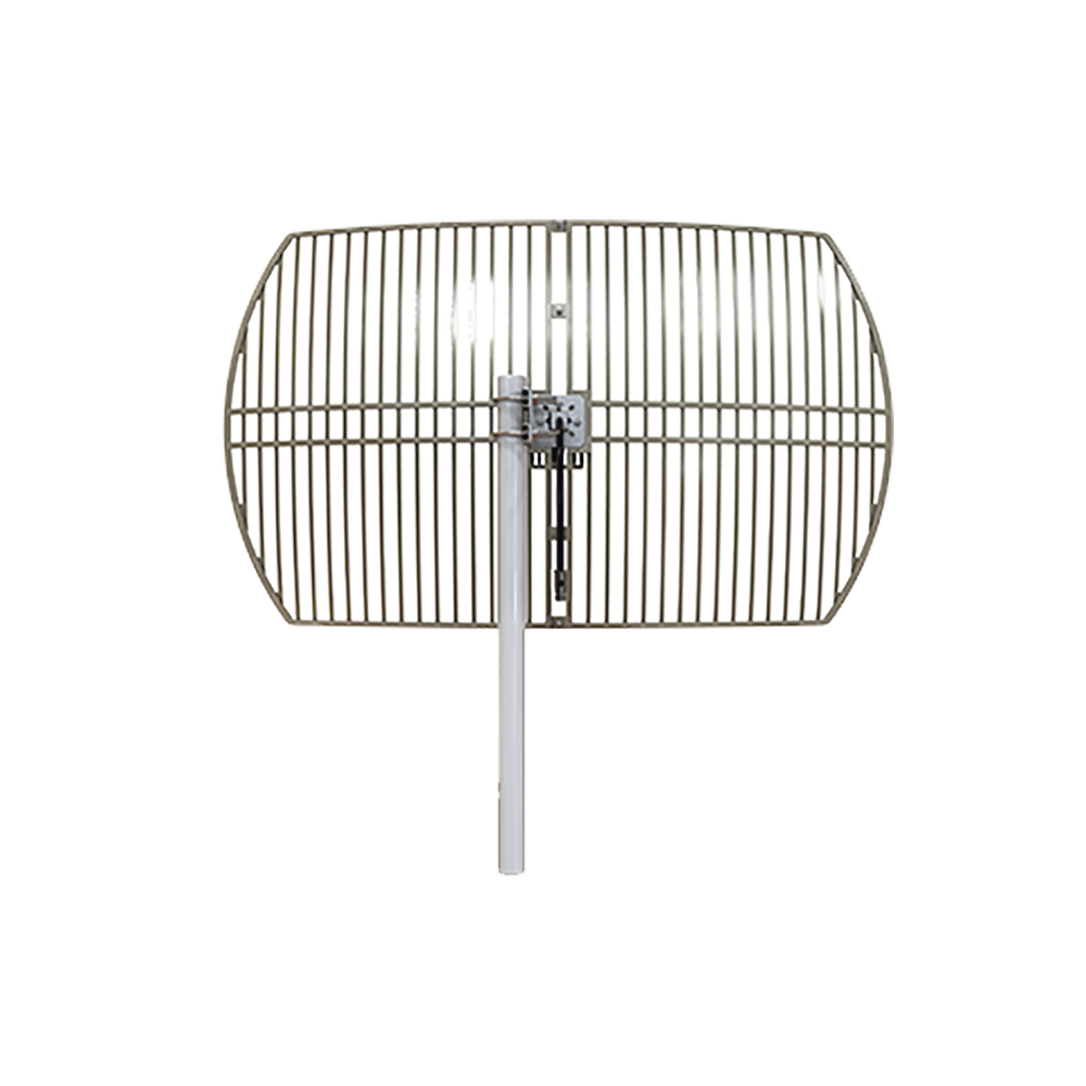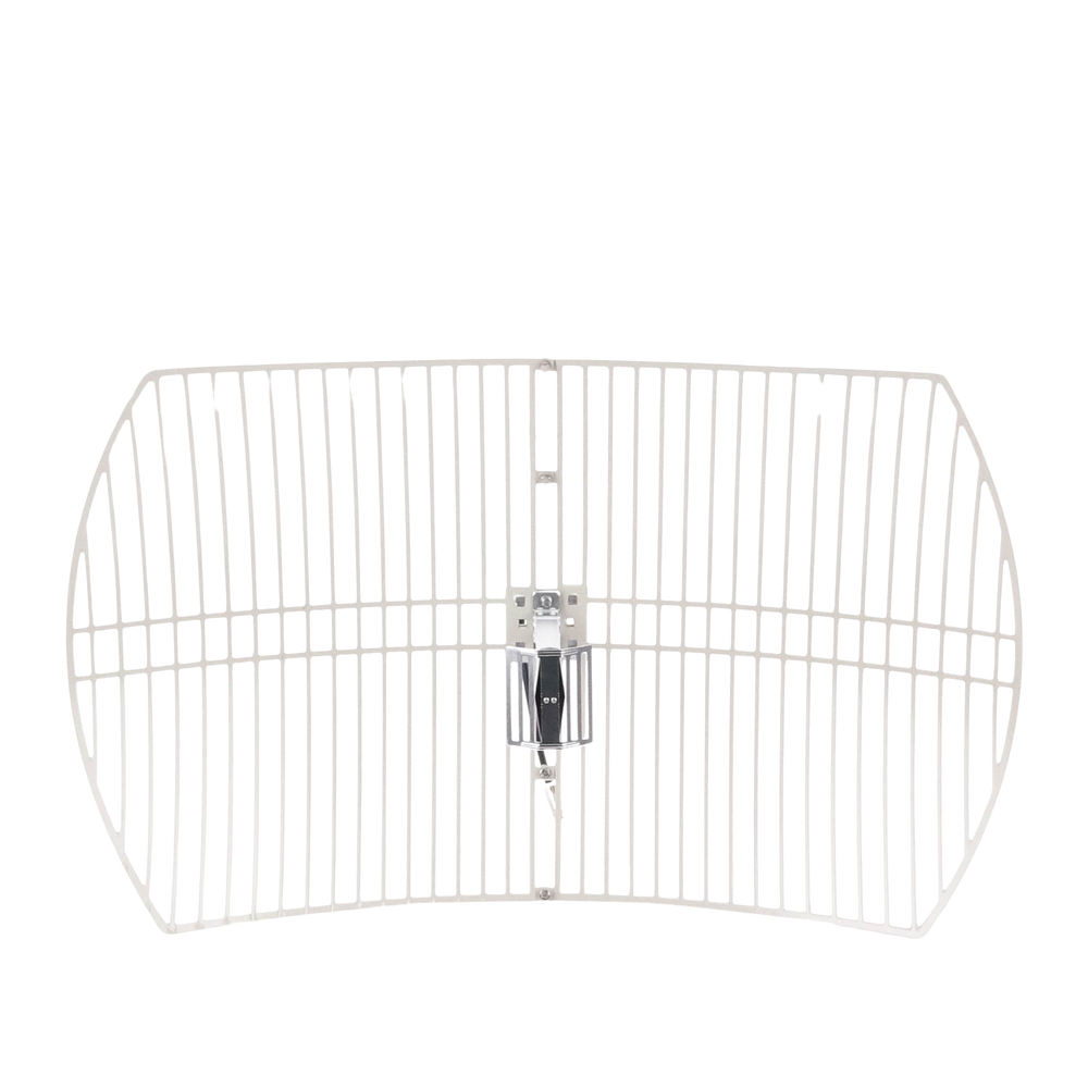 Antena Rejilla direccional, Ganancia 24 dBi, Dimensiones (90 x 60 x 38 cm), rango de frecuencia (2300-2500 MHz).