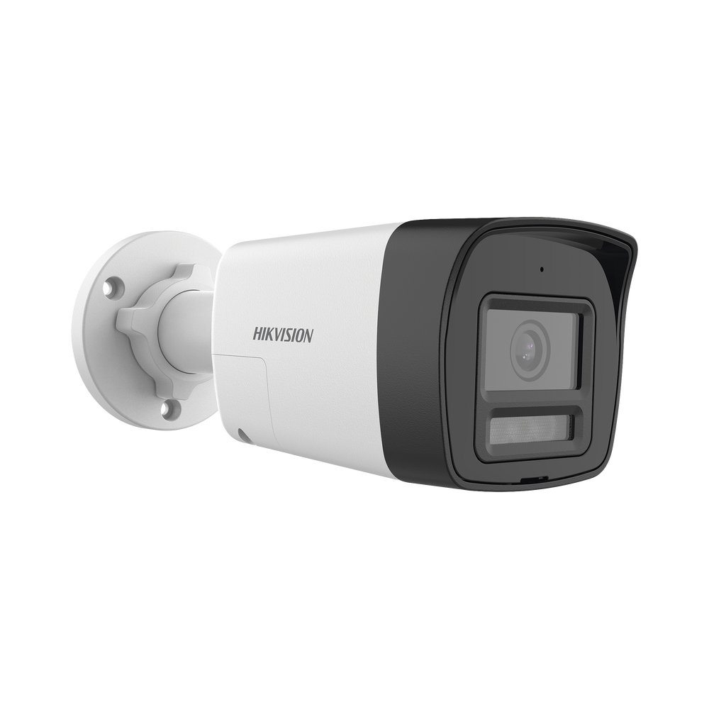 La cámara cuenta con un micrófono y bocina integrado, el cual no requiere cables adicionales para poder transmitir el audio y video. Podemos tener una comunicación bidireccional desde la App (Hik-Connect) usando el DVR de por medio para la interconexión.