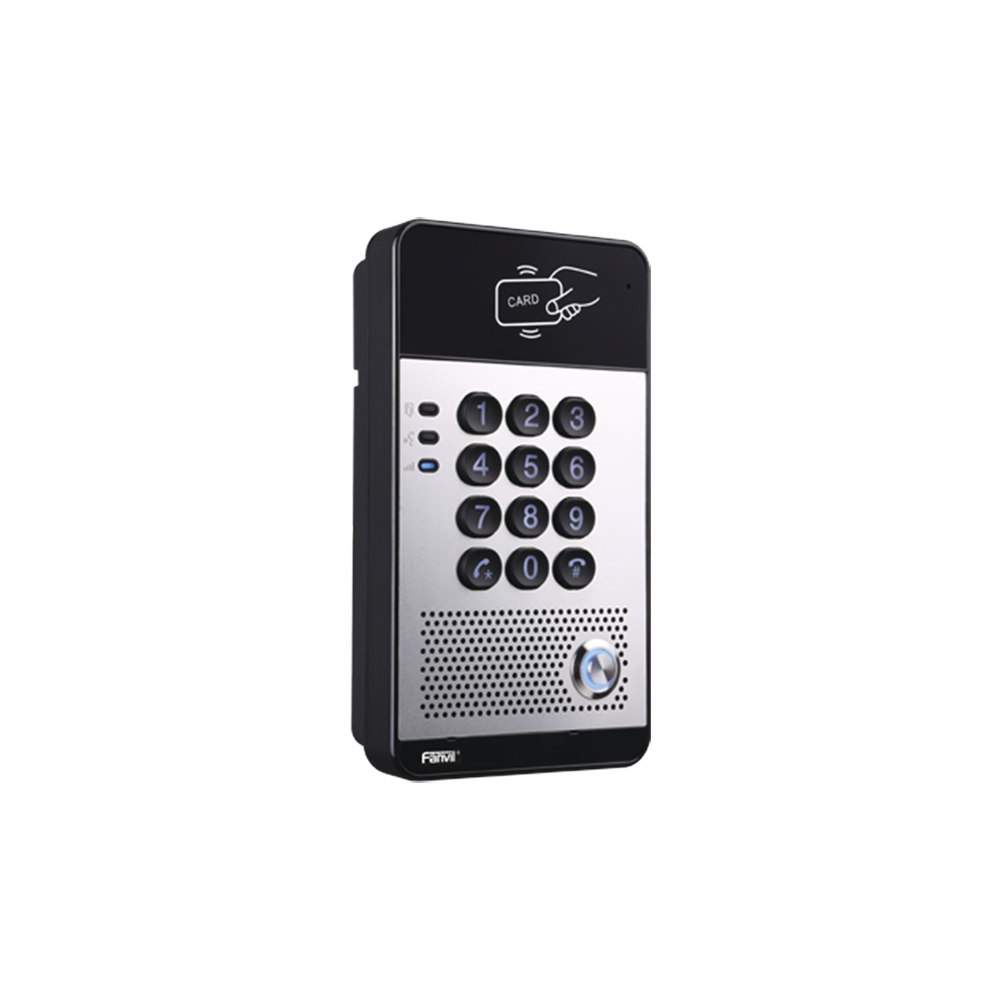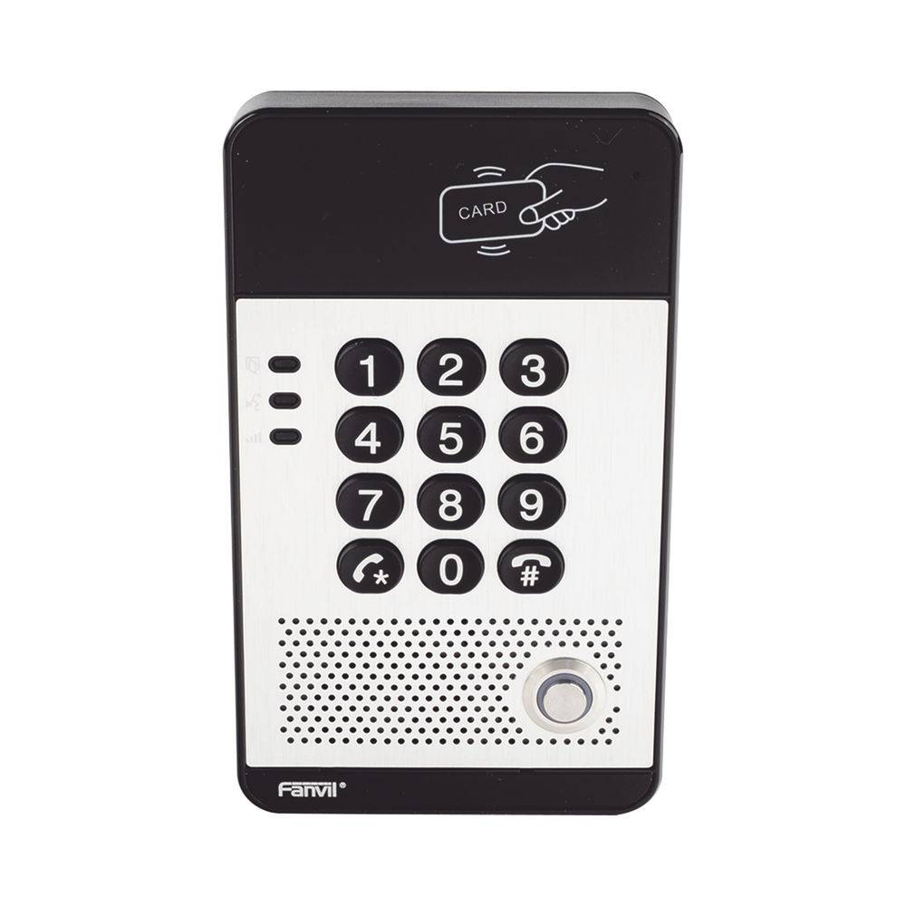 Audio Portero IP con 2 líneas SIP, relevador integrado, teclado numérico y lectora de tarjetas RFID para control de acceso, PoE