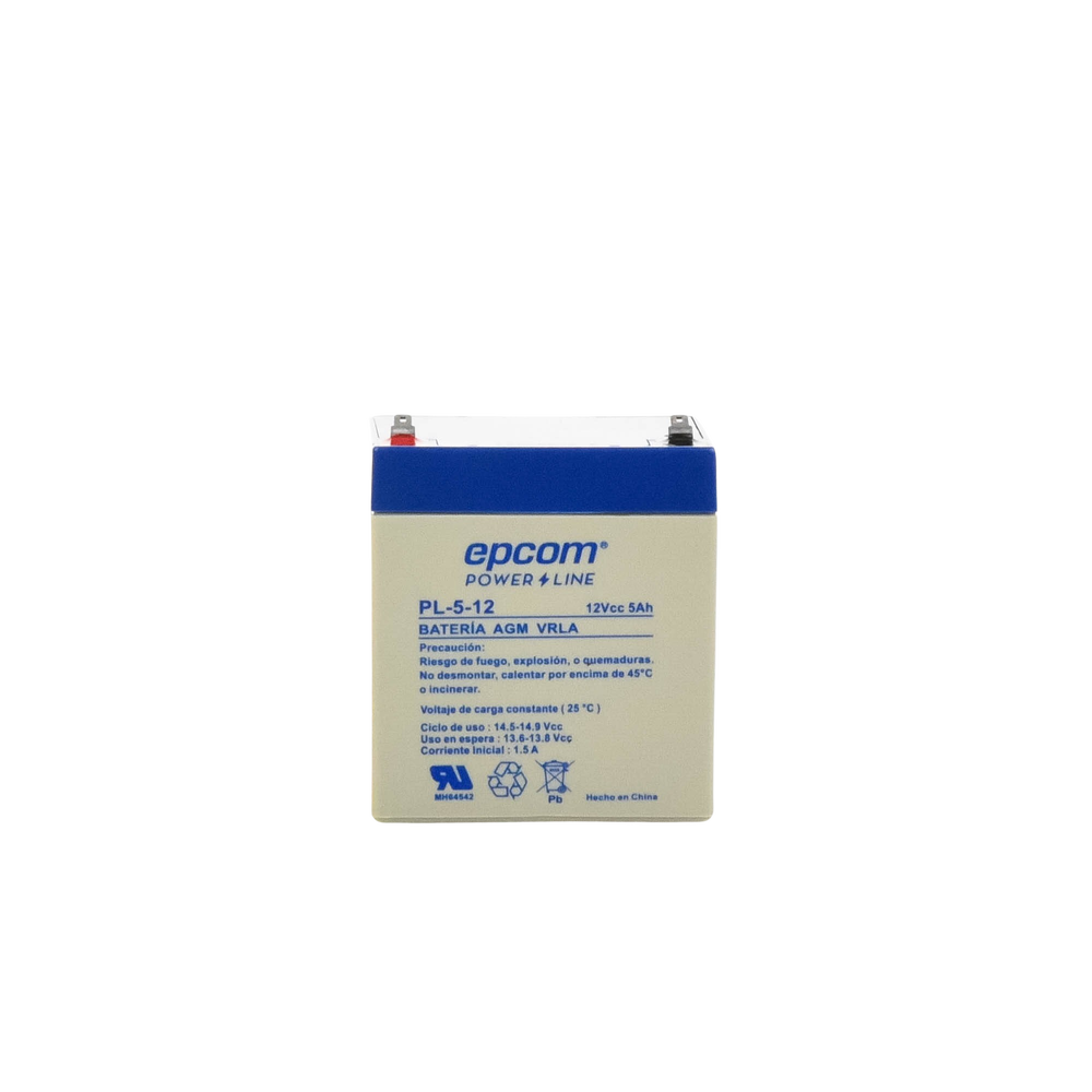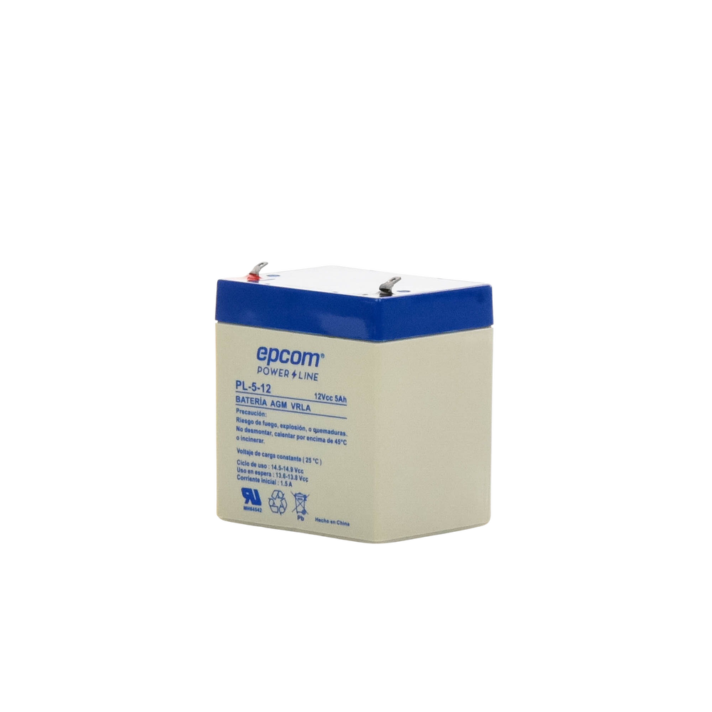 La serie de baterías EPCOM POWERLINE, están diseñadas con tecnología AGM-VRLA (Fibra de vidrio absorbente, con válvulas de regulación), placas de alto rendimiento y electrólito para proporcionar una salida de energía adicional. Las baterías de la serie EPCOM POWERLINE son baterías de respaldo para equipos electrónicos, con una vida útil de diseño flotante de 5 años a 25°C, aprobado por UL (MH64542).