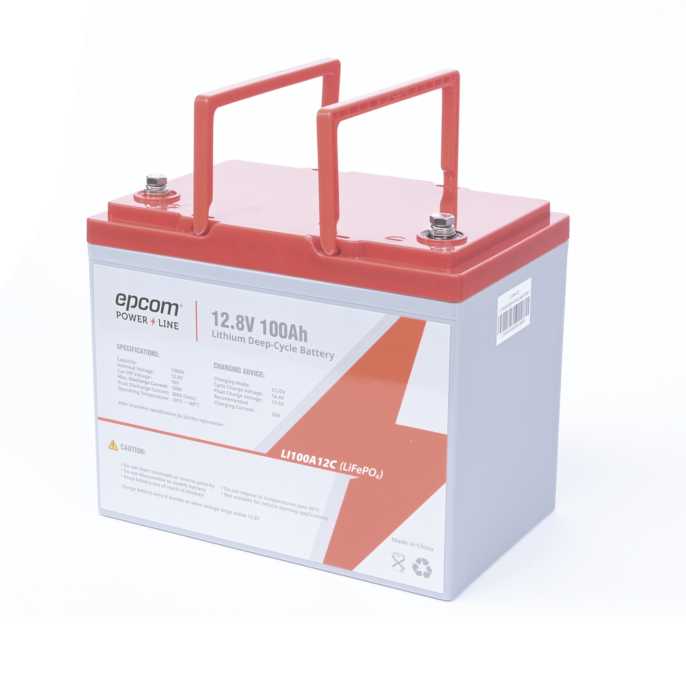 Batería de Litio Ciclo Profundo, 12.8 Vcc 100Ah (LiFePO4 de Celdas Cilíndricas) , Solar, Marina, Máximo 100 A de Descarga