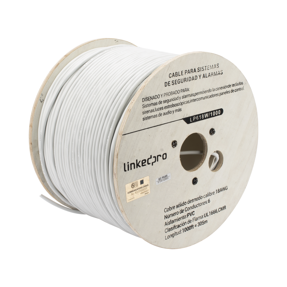 Bobina de Cable 305 Metros (1000 Pies): 6 x 18 AWG, Color Blanco, CMR, Para Sistemas de Seguridad y Alarmas