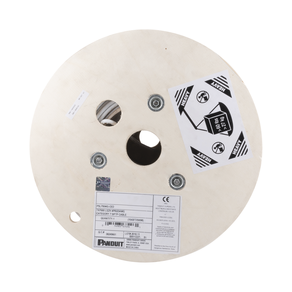 El cable de categoría 7 de Panduit cumple con el estándar de componentes IEC 61156-5 Clase F. Los conductores deben tienen una construcción de 23 AWG con aislamiento de PE de piel expandida. Los conductores de cobre estan trenzados en pares, cada uno cubierto por un blindaje de aluminio dentro de un blindaje trenzado general y una chaqueta con bajo contenido de humo y cero halógenos (LSZH).