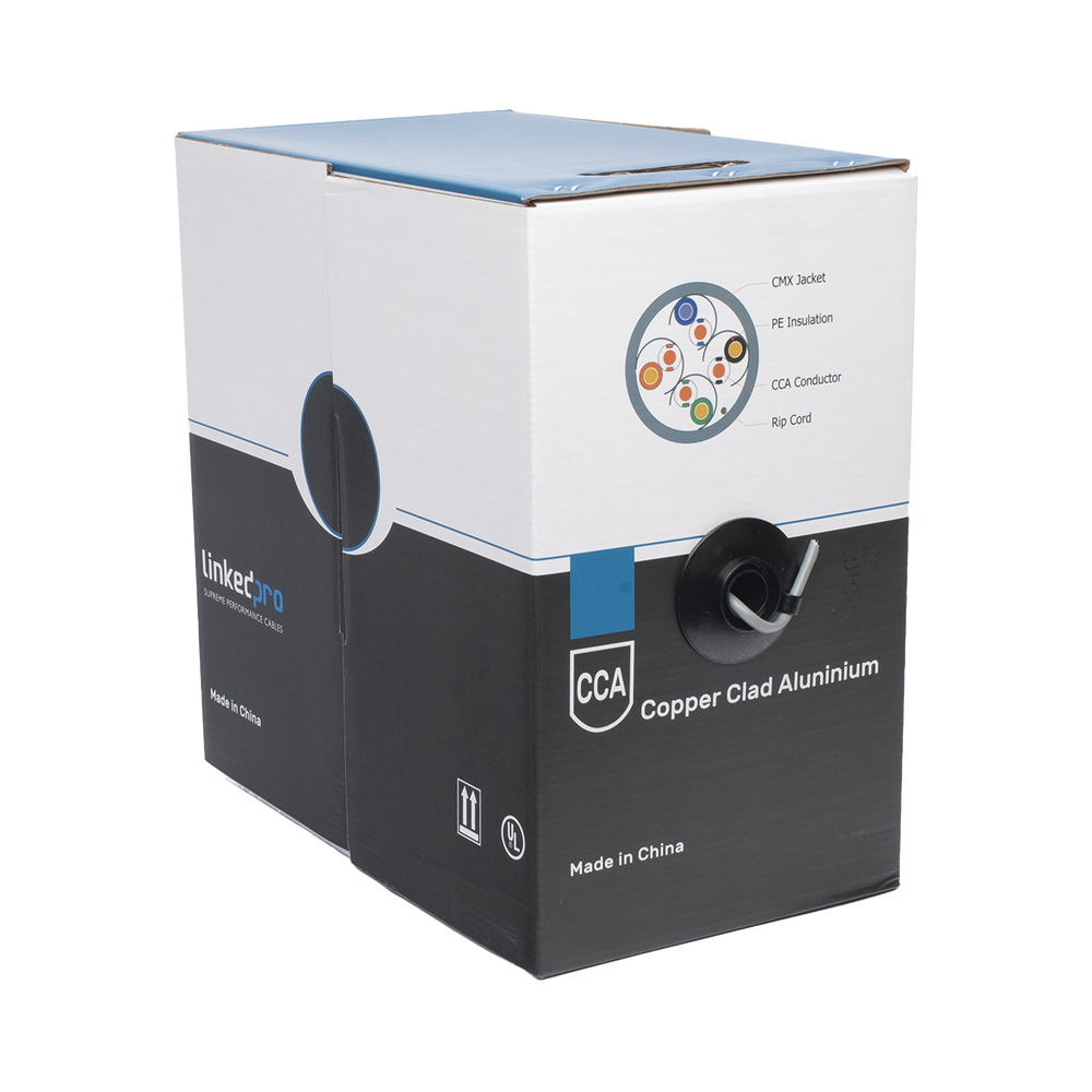 Bobina de Cable de 305 Metros (1000 Pies) Cat5e, Aleaci?n de Cobre y Aluminio (CCA), Color Gris, Uso Interior