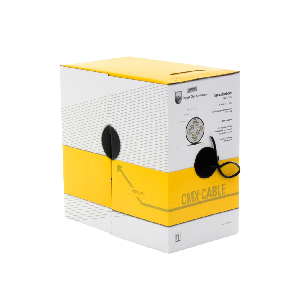 Bobina de Cable de 305 Metros (1000 Pies) Cat5e, Aleaci?n de Cobre y Aluminio (CCA), Color Negro, Uso Interior