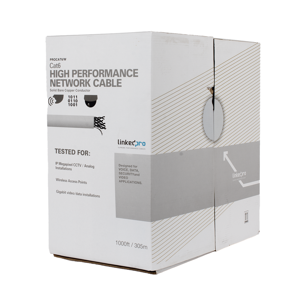 Bobina de Cable UTP de 305 Metros (1000 Pies) Cat6 Aleaci?n de Cobre y Aluminio (CCA), Color Blanco, Uso Exclusivo Interior