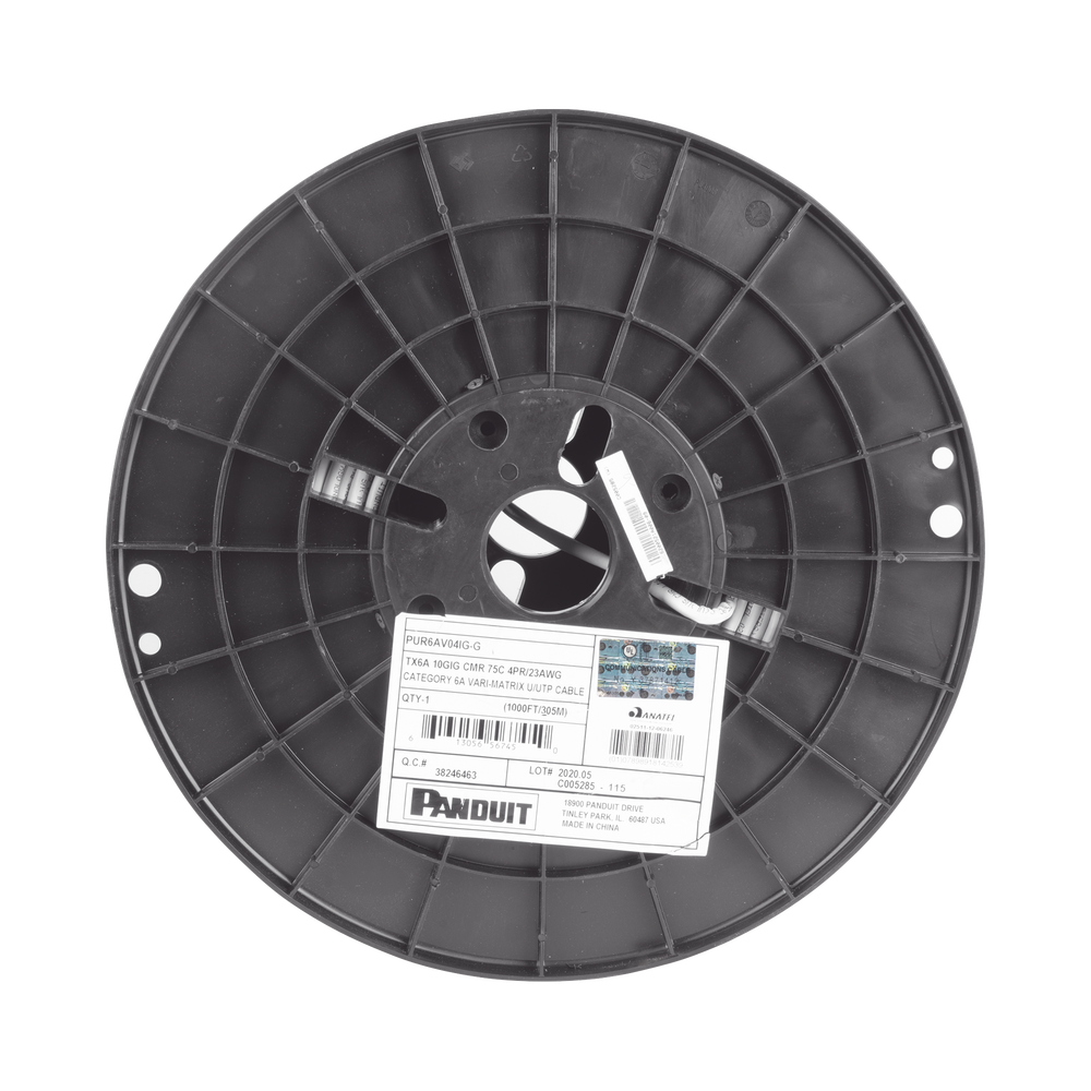 Bobina de Cable UTP de 4 Pares, Vari-MaTriX, Cat6A, 23 AWG, CMR (Riser), Color Gris, 305m