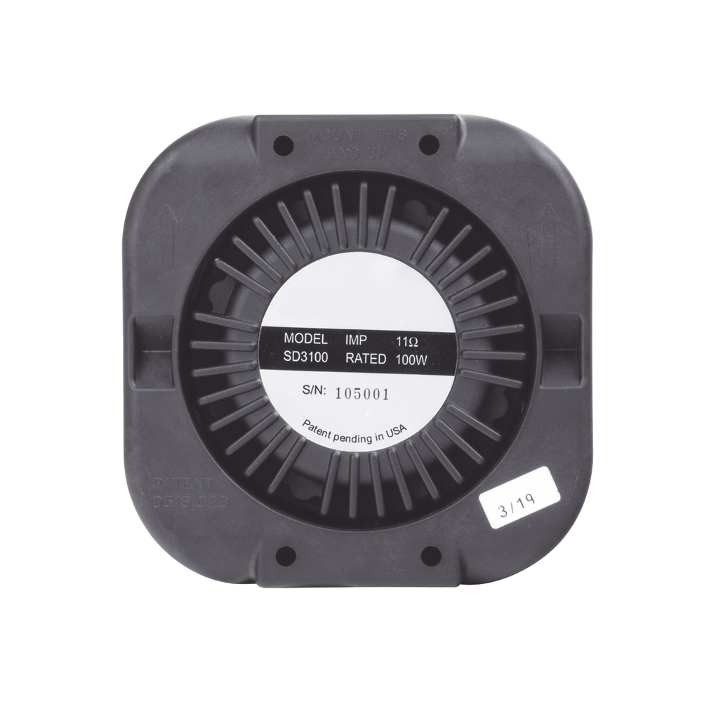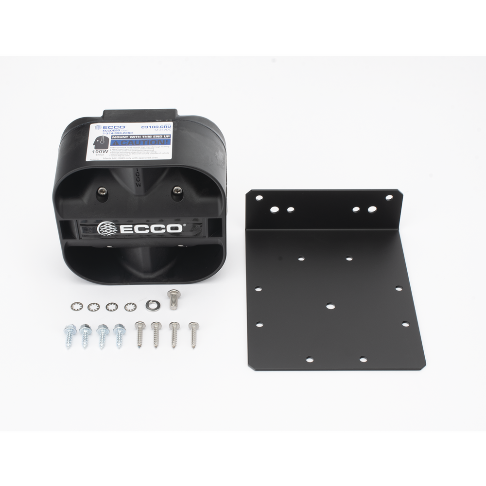 El diseño de bajo perfil de la serie C3100 ™ funciona con todas las sirenas ECCO. Las características incluyen alta eficiencia, montaje de rejilla fácil de instalar, soportes de montaje universales y específicos del vehículo, y produce un tono de baja frecuencia con amplificador Banshee®.