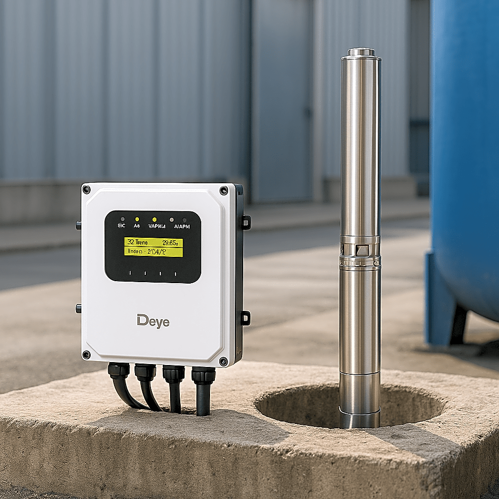 El sistema de bombeo sumergible Deye SP3000ACDC representa la gama alta en soluciones de riego solar. Este equipo es ideal para distribuidores que buscan ofrecer una solución ‘Todo en Uno’. Gracias a su controlador híbrido inteligente, la bomba puede priorizar la energía solar y conmutar a corriente alterna de manera automática, garantizando agua constante independientemente de las condiciones climáticas.
