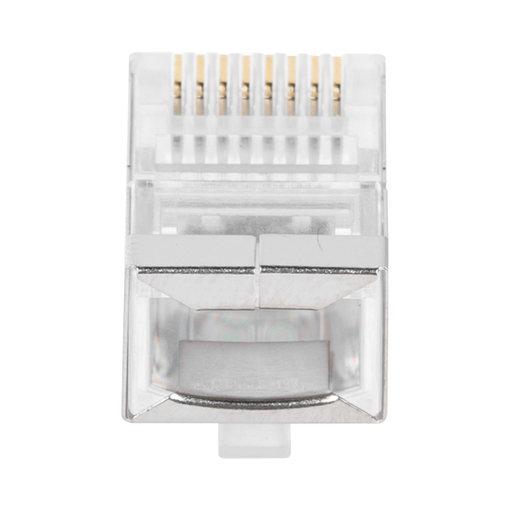 Bote con 100 Plugs Pass Through RJ45 Cat5e Blindado, Chapado de Oro a 30 Micras para Durabilidad Extrema