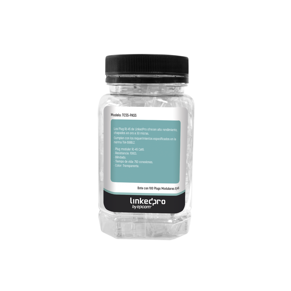 Terminaciones más rápidas, fáciles y eficientes con los plugs Pass through de LinkedPro, su diseño de una sola pieza permite que los cables pasen a través del conector de una manera eficiente, manteniendo alta integridad de señal.