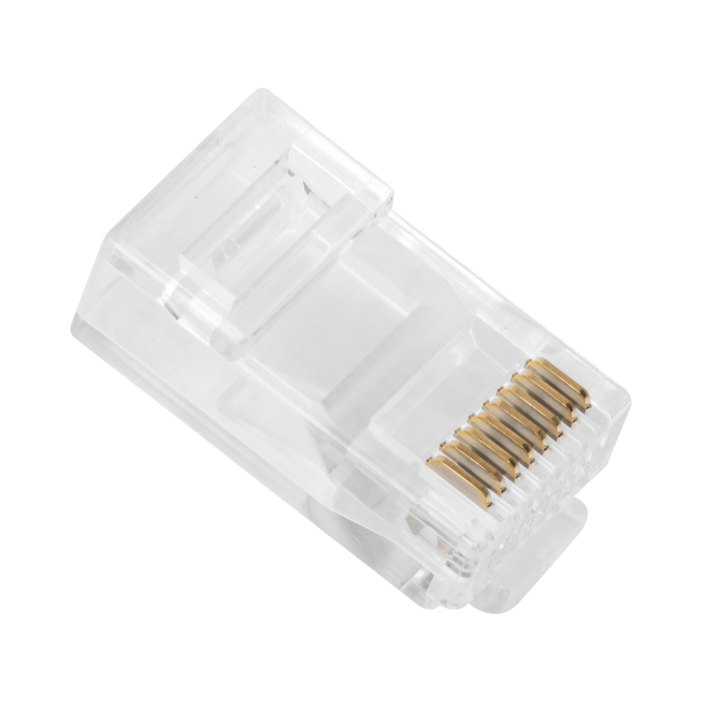 Bote con 100 Plugs Pass Through RJ45 Cat6 sin Blindaje, Chapado de Oro a 30 Micras para Durabilidad Extrema