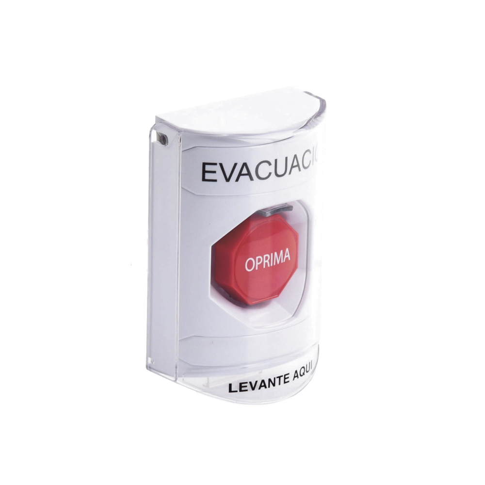 Botón de Evacuación, Cubierta de Policarbonato Súper Resistente de Superficie con Espaciador, Restablecimiento con Llave, Con Bocina de Advertencia