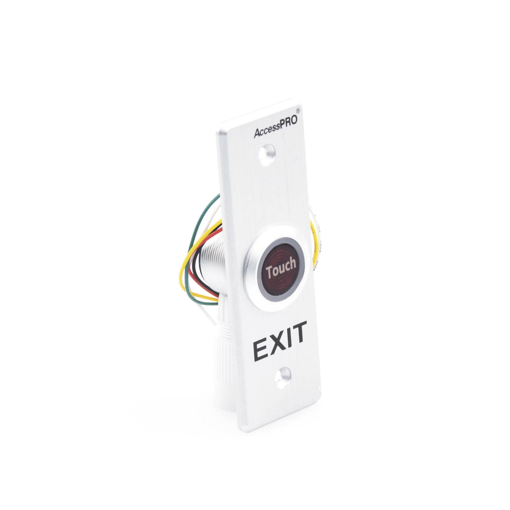 Botón de salida de perfil angosto para instalaciones elegantes y prácticas. De tacto sensible y carcasa de aluminio.