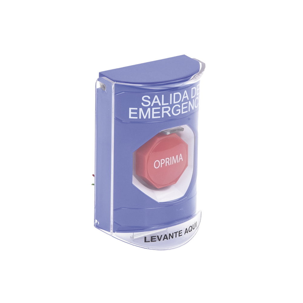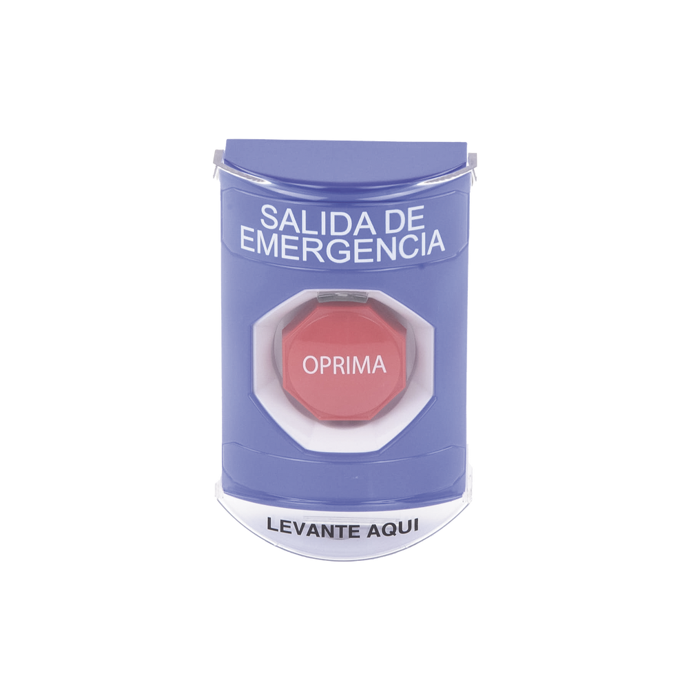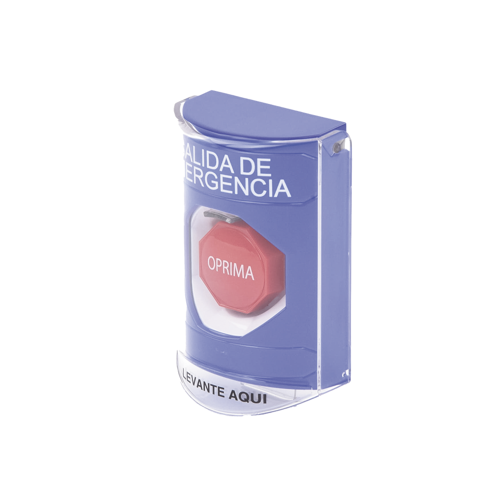 Botón de Salida de Emergencia, Texto en Español, Tapa Protectora de Policarbonato Súper Resistente, Restablecimiento con Llave