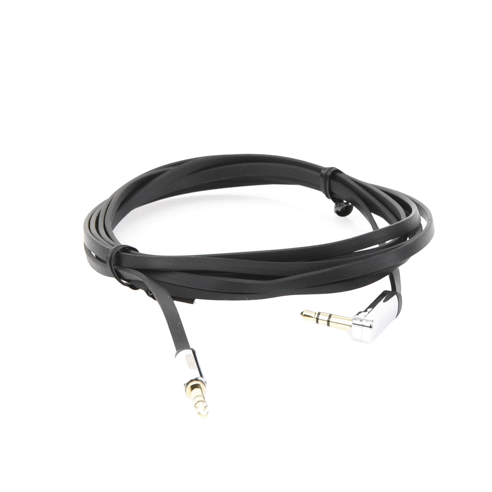 Cable Auxiliar Plano 2 Metros / Conector 3.5mm a 3.5mm / Macho-Macho / Recto a Angulo / Ángulo de 90° en una de sus Puntas / Color Negro