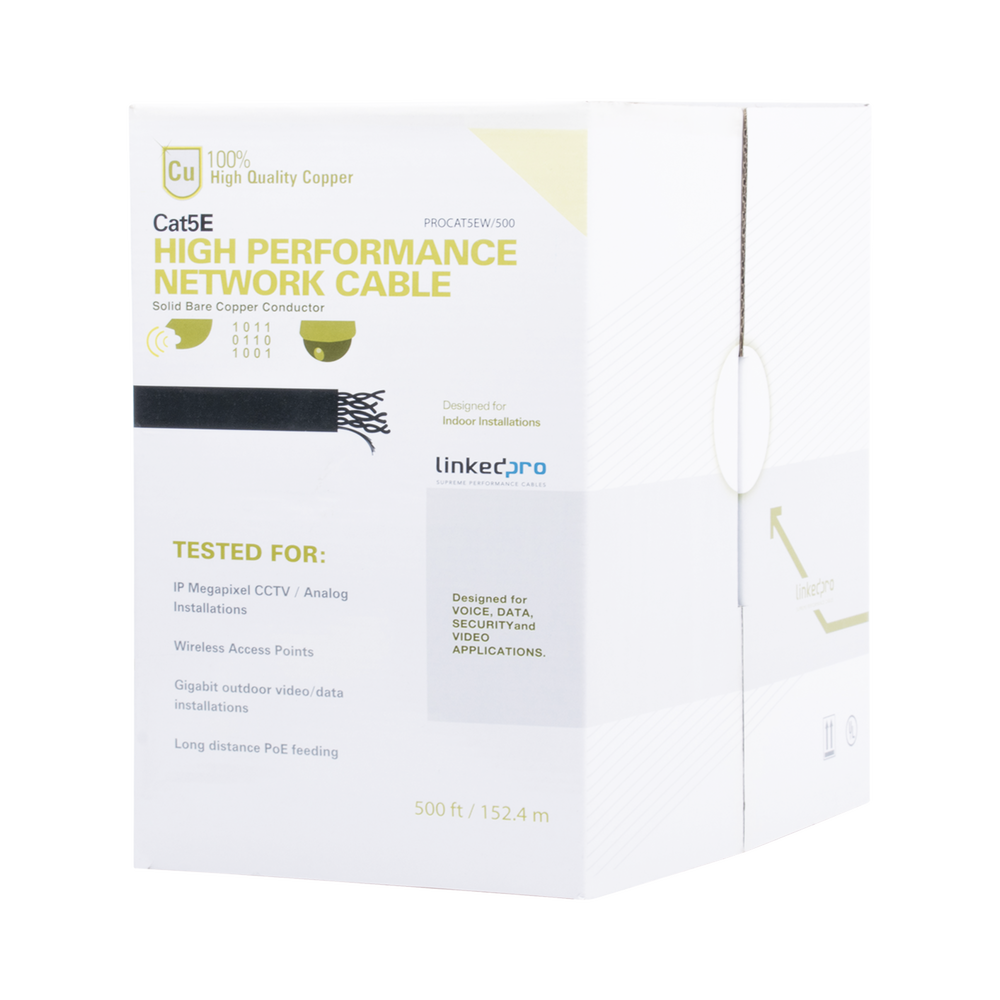 Cable Cat5e de Alto Rendimiento Certificaciones ETL, UL, de 152.5 Metros (500 Pies) de Color Blanco, para Aplicaciones en Video Vigilancia, Redes de Datos. Uso Interior.