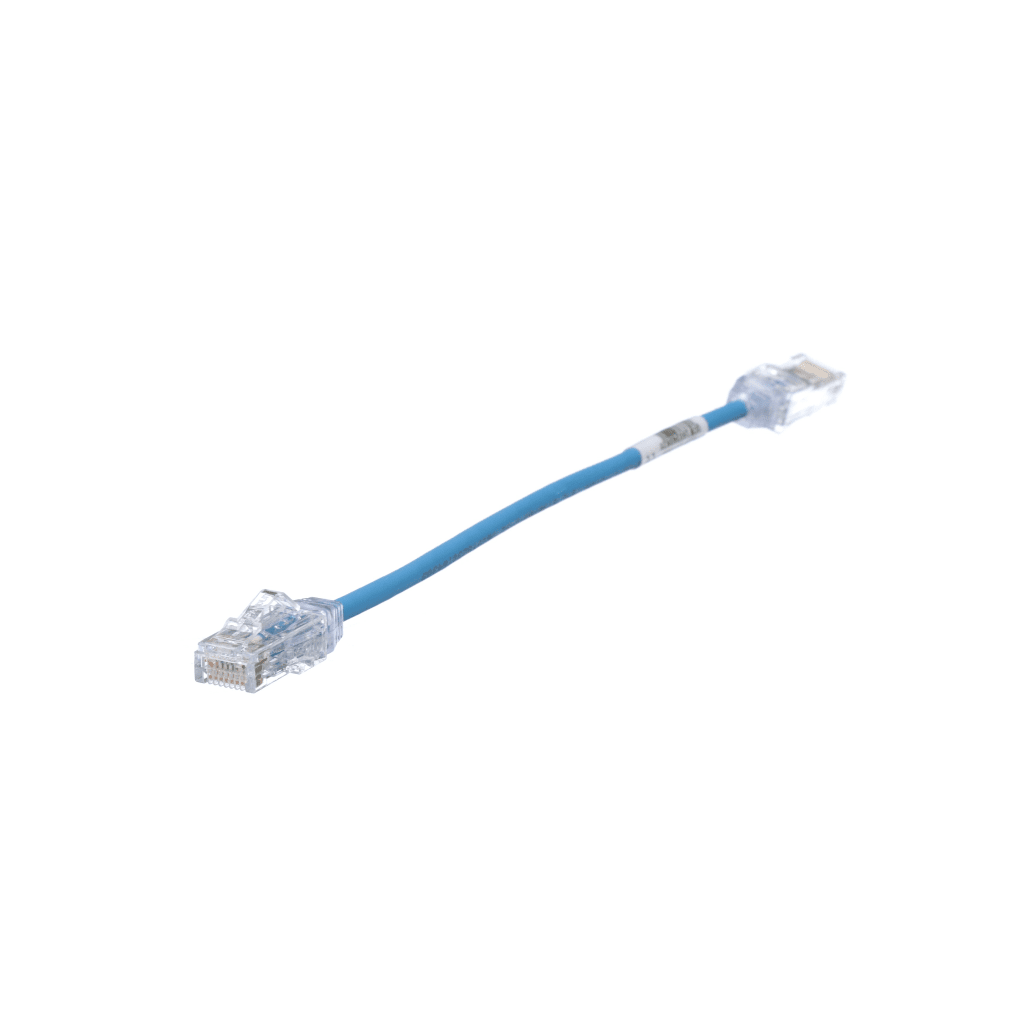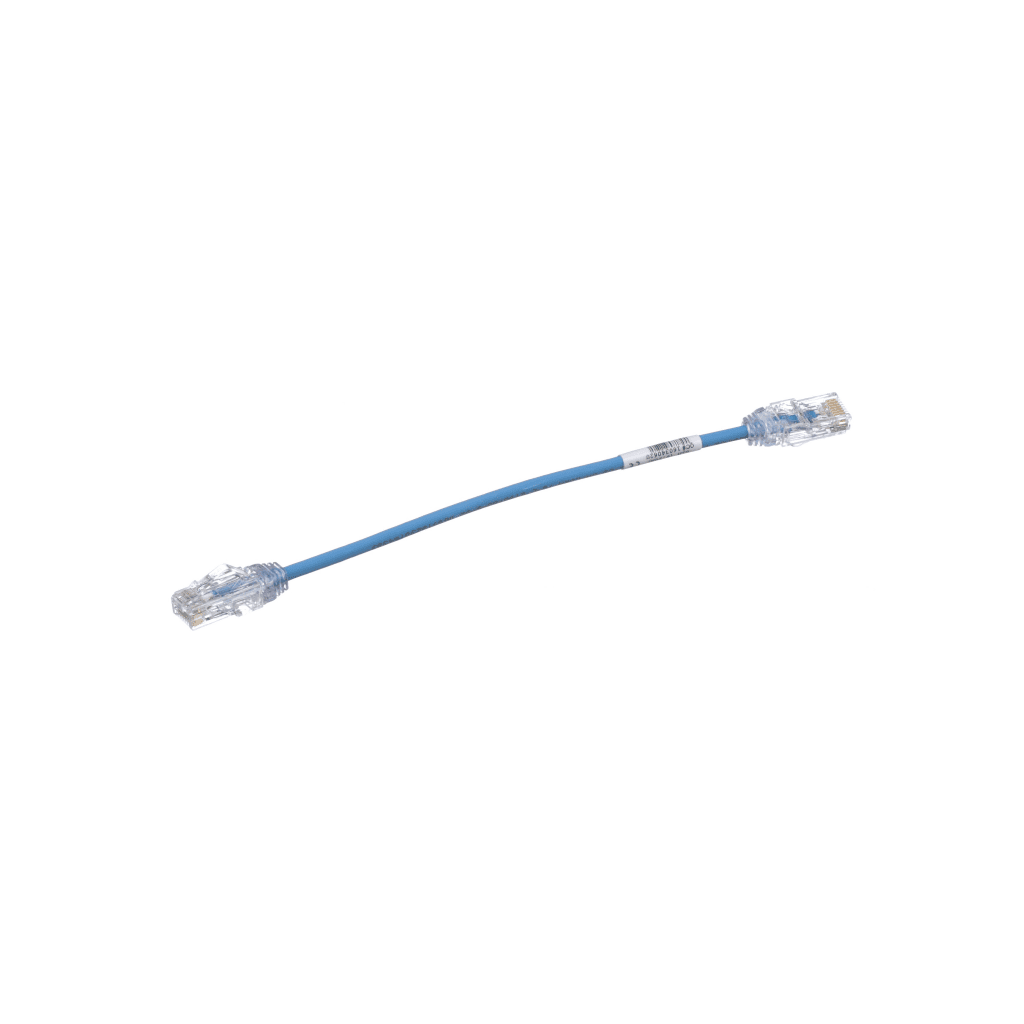 Los cables de parcheo de categoría 6A/Clase EA, UTP, de diámetro reducido están construidos con cable de cobre de par trenzado sin blindar calibre 28 AWG (CM/LSZH de doble clasificación), con plugs modulares RJ45 de alto rendimiento. Los cables de conexión se ofrecen en múltiples longitudes y colores para flexibilidad de diseño.