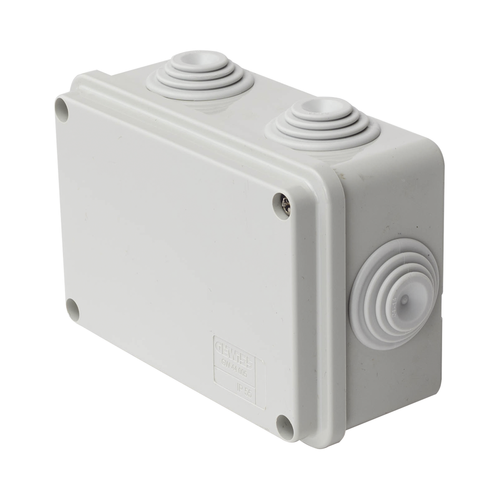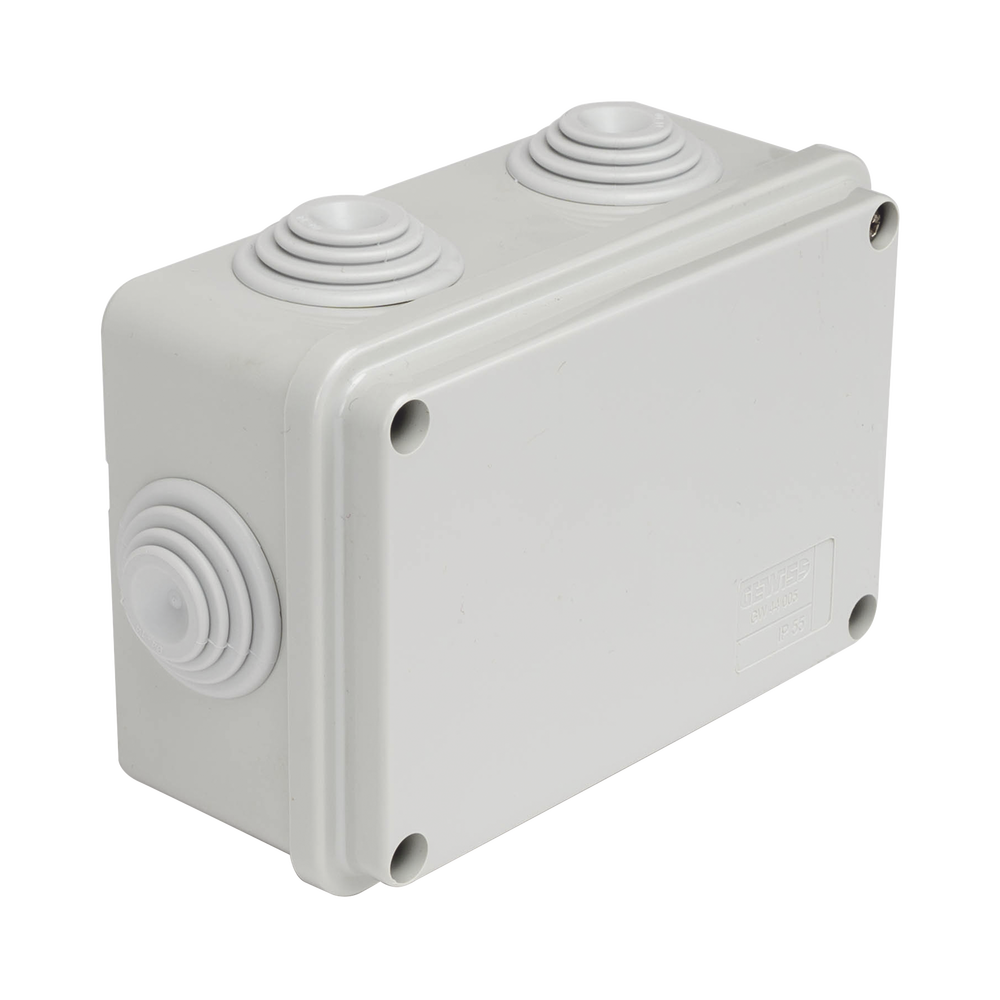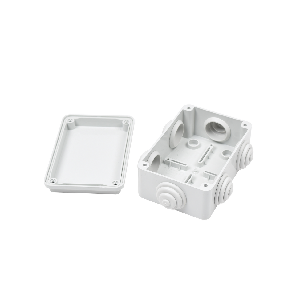 Caja Estanca de PVC Para Derivación y Conexión, 6 Entradas, Tapa Atornillada, 120x80x50 mm (Área interna), Uso Exterior IP55, Material que no Propaga el Fuego y Libre de Hálogenos