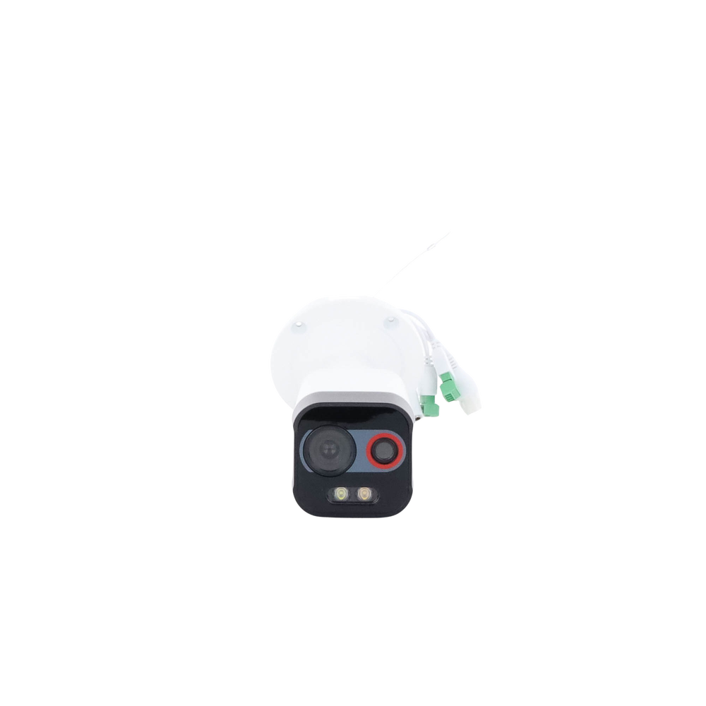 Cámara Bala IP Térmica y Óptica Biespectral / Análisis de Video (VCA) para Protección Perimetral / Clasifica Vehículo/Humano / Térmica 96 x 72 / Óptica 4 MP ColorVu / IP67 / Audio y Alarma Visual