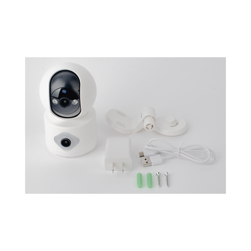 Camara doble lente 3mp| Wifi| autoseguimiento| Detección de movimiento| audio de 2 vias| almacenamiento hasta 128GB