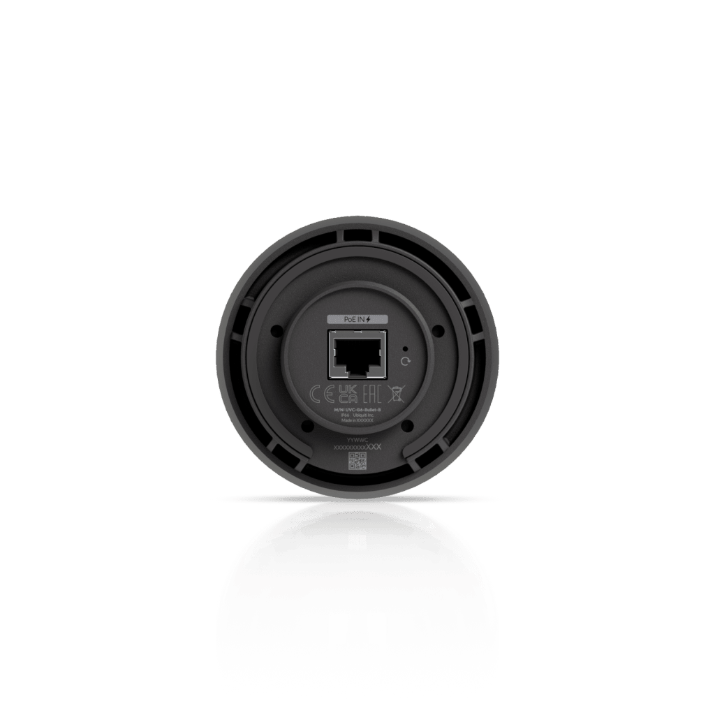 Cámara UniFi Protect G6 Bullet, PoE, 1.8″ 4K, AI Multi-TOPS, Visión Nocturna IR 30m, Protección IP66, Reconocimiento Facial y Placa, Montaje en Pared, Techo y Poste