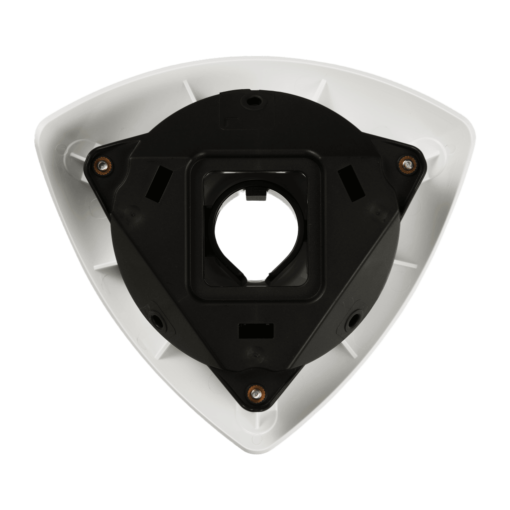Carcasa de Montaje en Esquina para Cámara de Cabeza Remota / Material: Policarbonato / Color Blanco / Dimensiones: 124.5 mm x 151.5 mm x 56 mm / Peso: 90g / Certificaciones FCC y CE