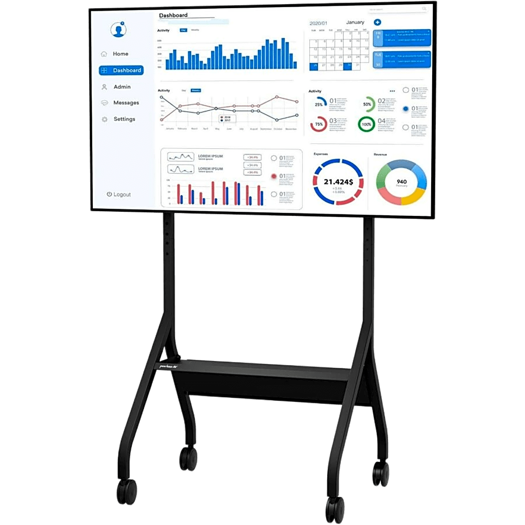 Carro Móvil para Pantalla Plana / 43″ a 75″+ Displays / Altura Ajustable 49.8″-65.8″ (126.5-167.1 cm) / Capacidad 150 lb (68 kg) / 4 Ruedas Dobles 4″ (102 mm) / Gestión de Cableado Interno / Estructura Tubular / Incl