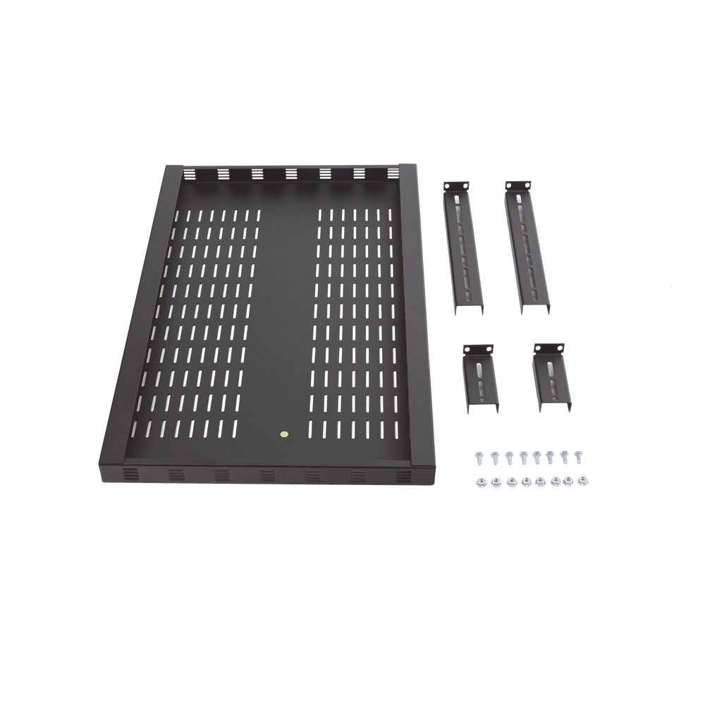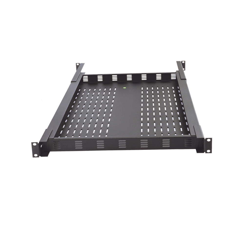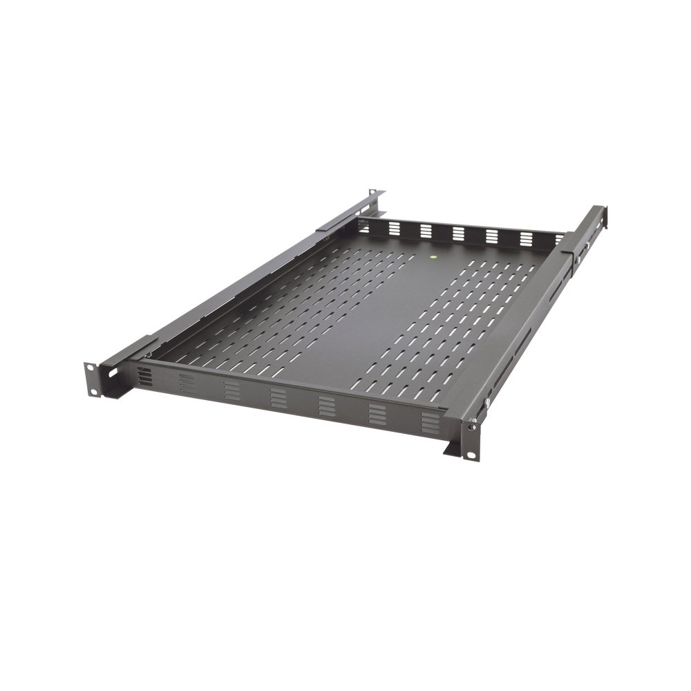 Charola Ventilada para Soportar Equipos en Rack, Profundidad Ajustable de 495 a 965 mm, 1U, Color Negro