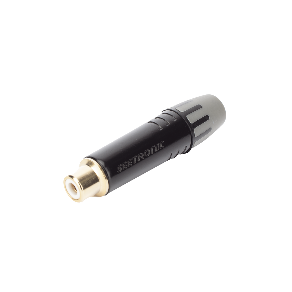 Conector Hembra RCA | Carcasa Enchapada en Negro | Contacto Enchapado en Oro | Cable OD 3.5-6.5mm