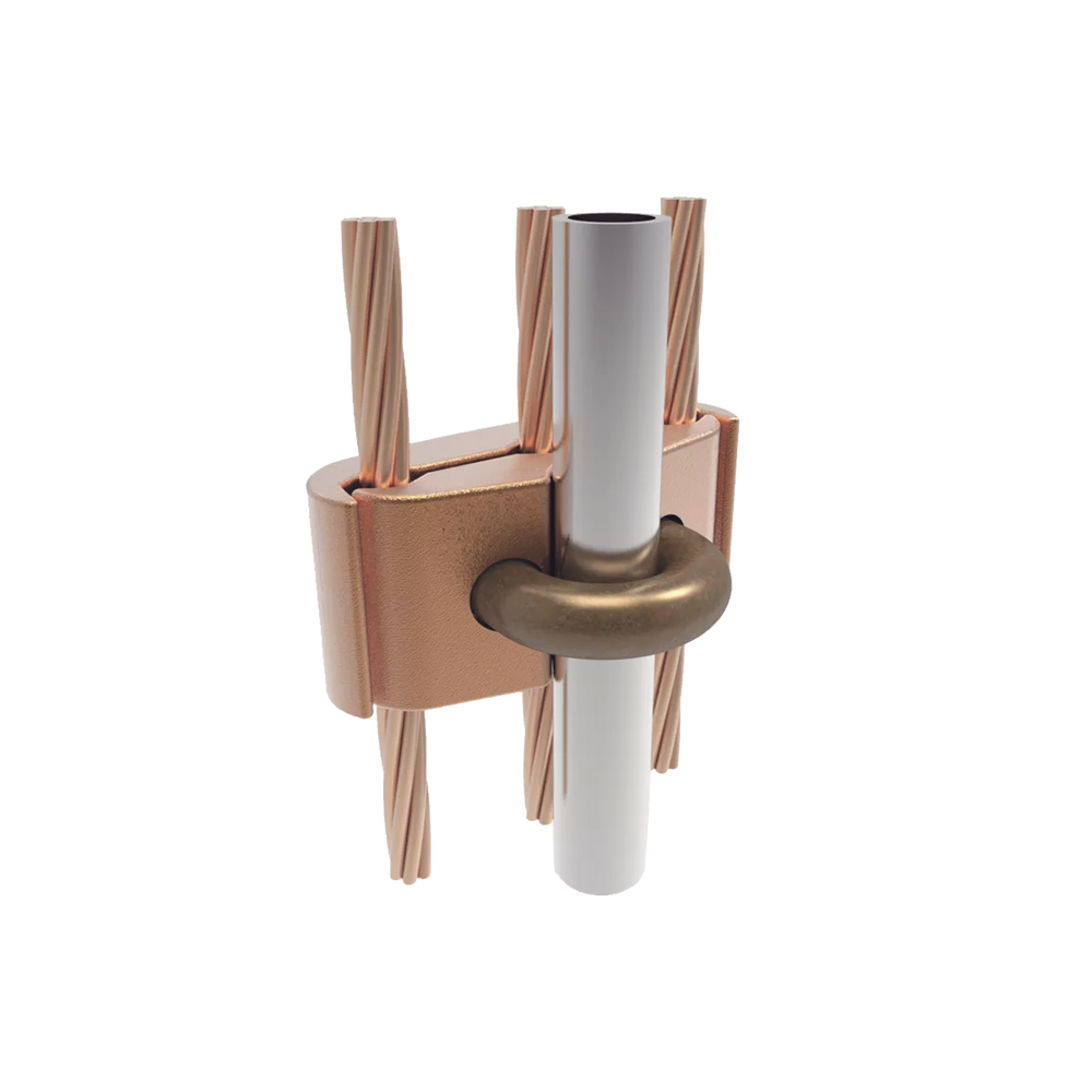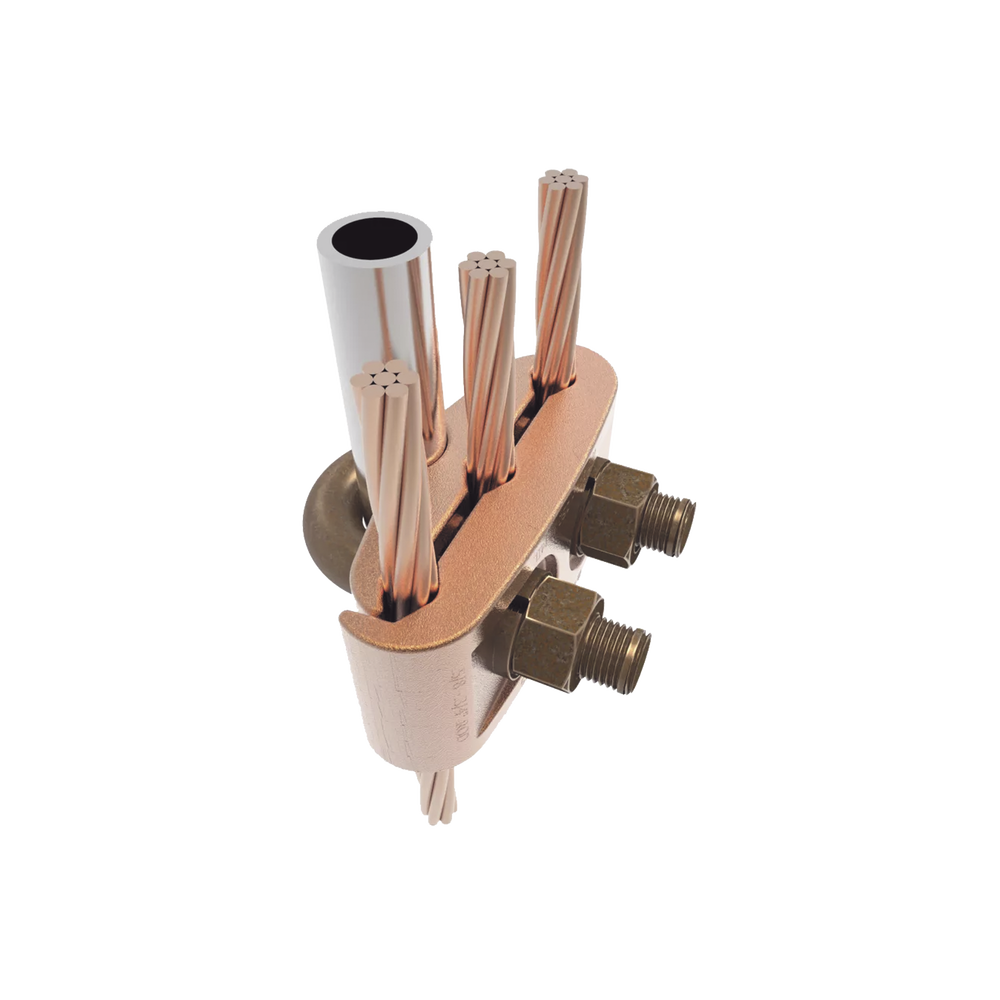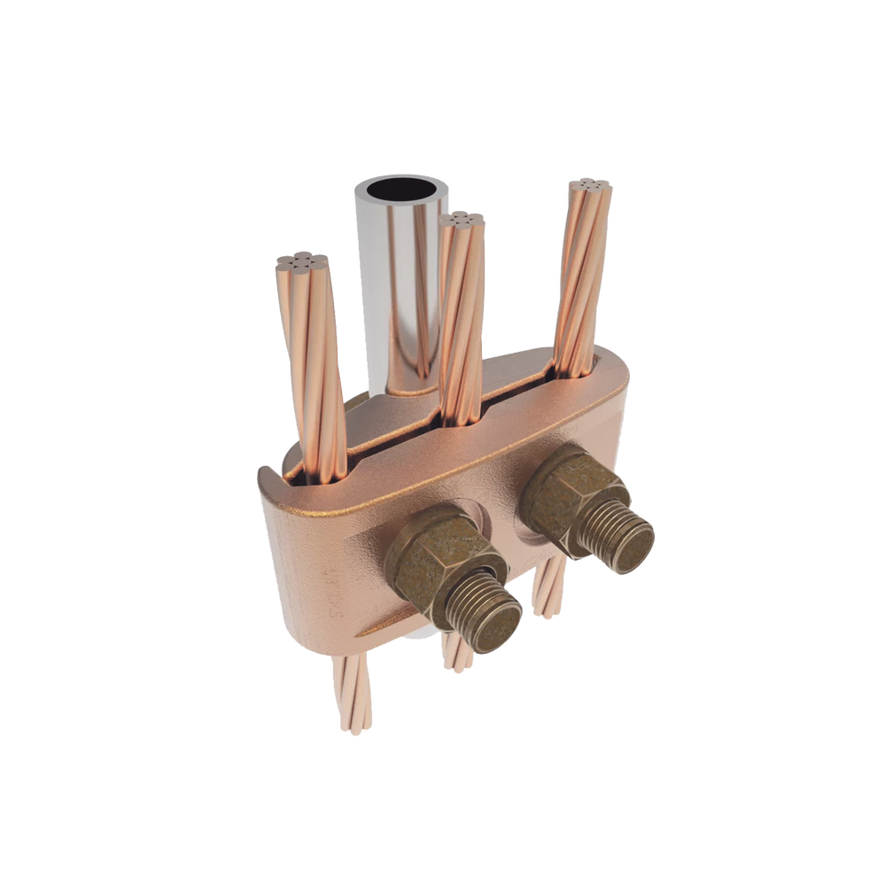 Conector Mecánico para 3 Cables para Calibre 4 AWG – 2/0 AWG a Tubería de 3/8″ o Varilla 5/8″ – 3/4″ Perno 3/8″.