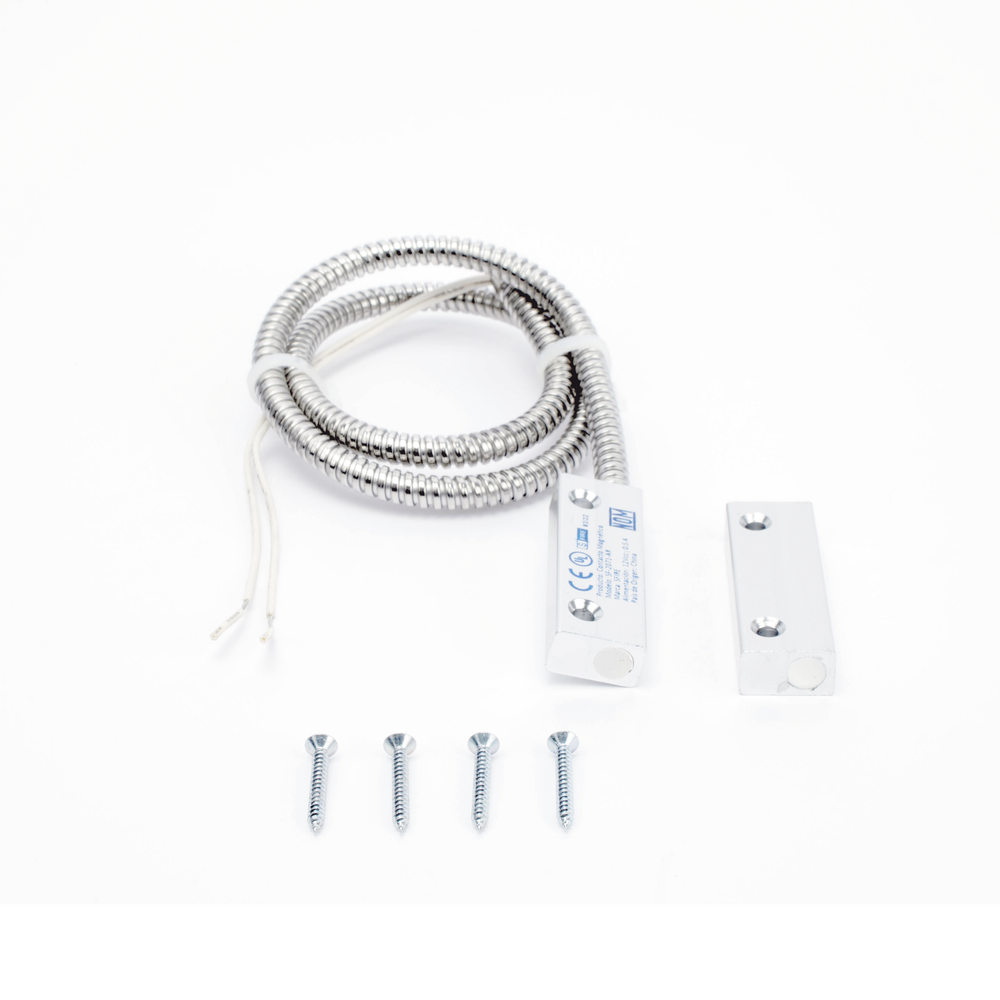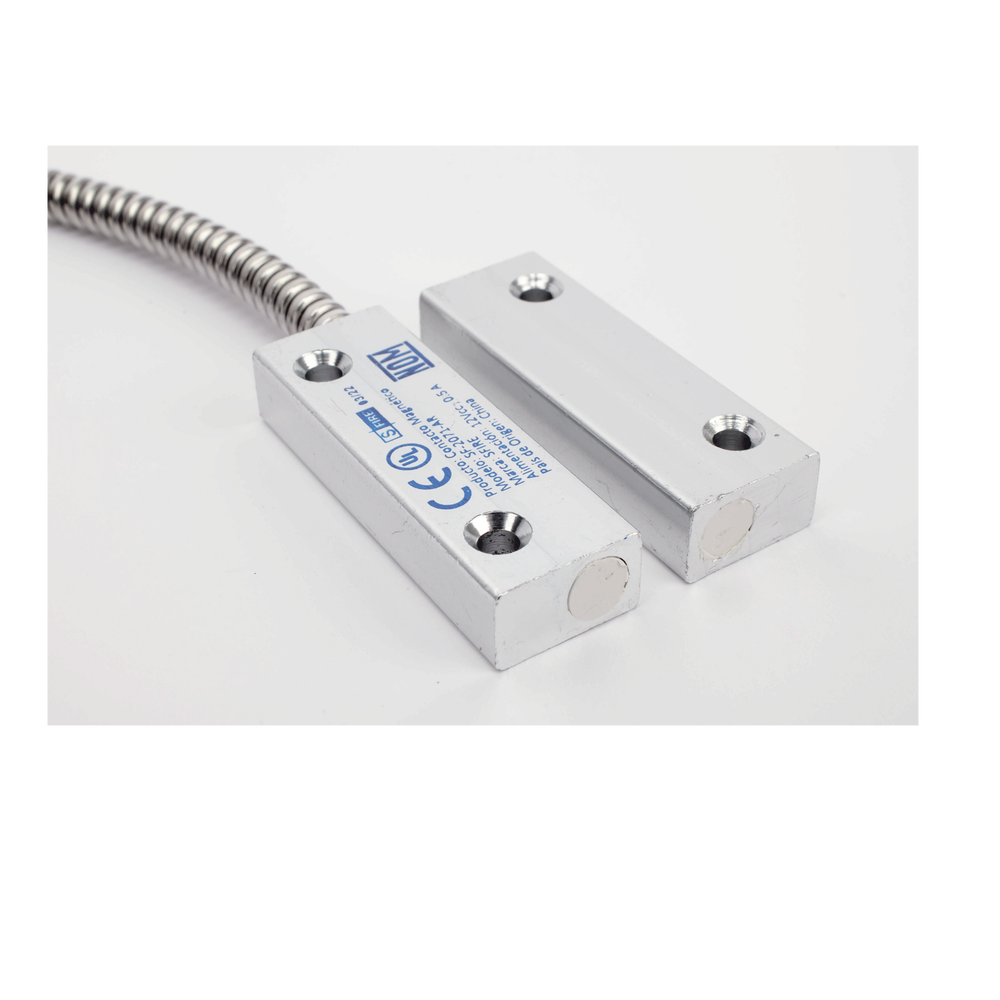 El Sensor magnético para ventanas y puertas consta de un imán y un reedswitch (interruptor magnético). Este sensor funciona como un switch normalmente cerrado (mientras hay campo magnético). Cuando la puerta o ventana se abre, el circuito eléctrico también se abre y es posible detectar la apertura de la misma.
