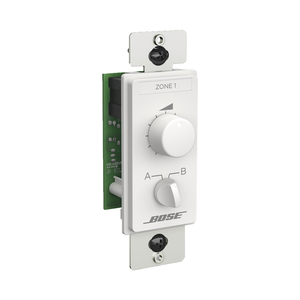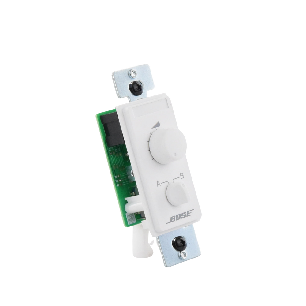 Los controladores de zona Bose ControlCenter CC-2 proporcionan control de volumen y selección de fuente A/B para los productos FreeSpace®, Veritas y PowerSpace+. Caben en las cajas eléctricas de un empalme de Norteamérica. 2 conectores RJ-45 que permiten conexión en cadena