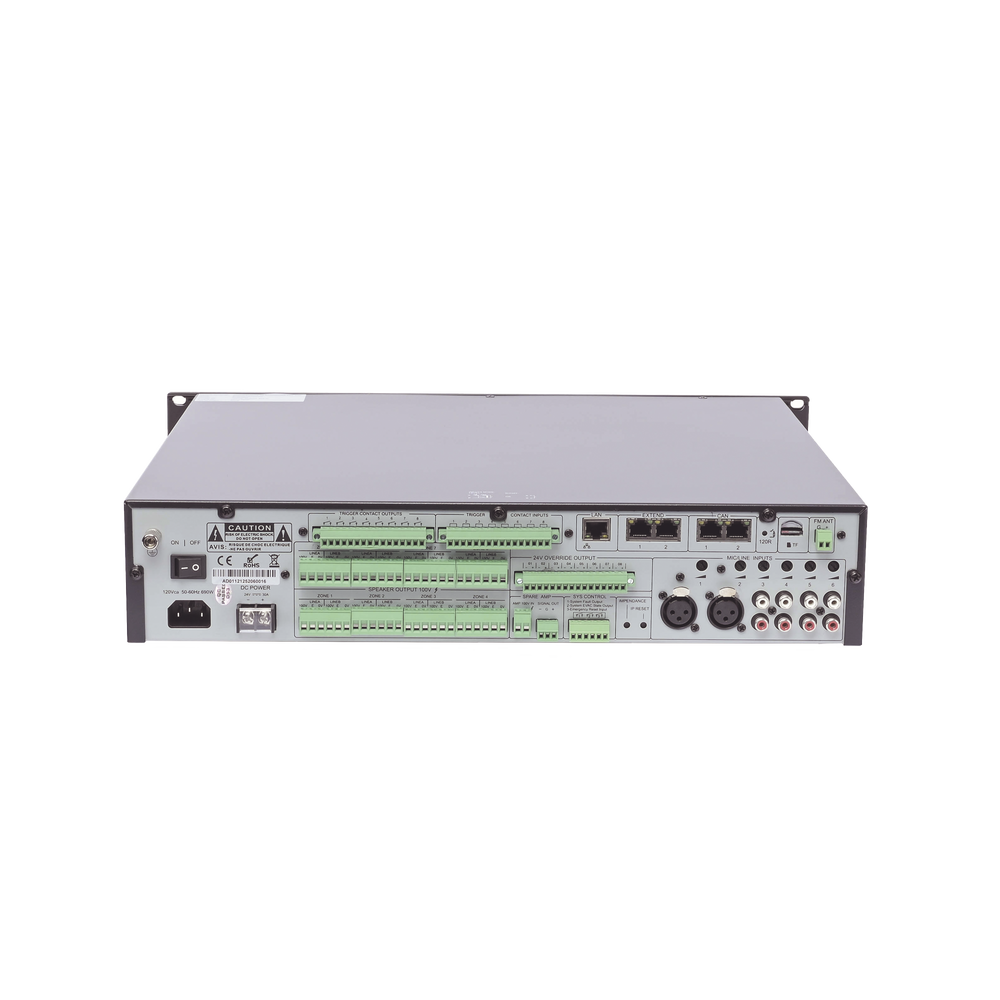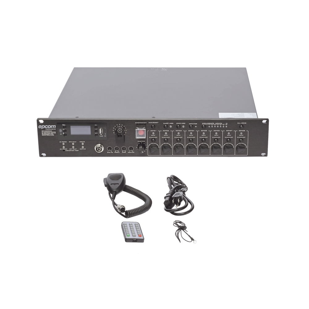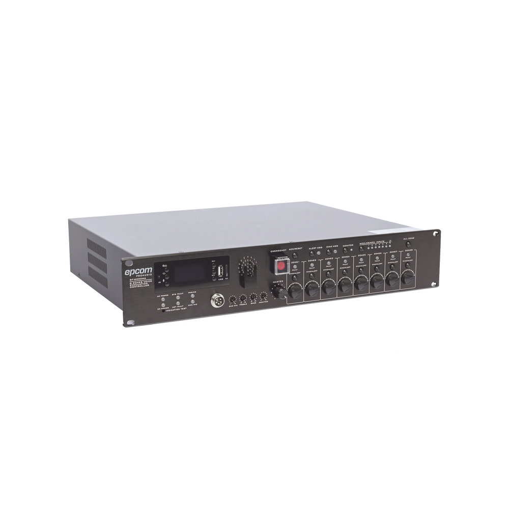 Controlador de Evacuación Por Voz | 500 W | 8 Zonas independientes | 4 entradas de audio y 2 entradas de micrófono