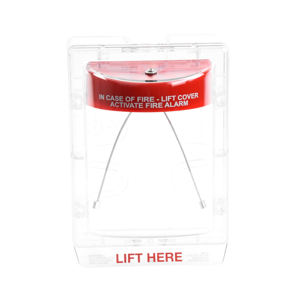 La serie Stopper II® consta de una resistente cubierta de policarbonato transparente que es inviolable y un armazón que se ajusta sobre las estaciones de palanca operadas manualmente. Cuando se levanta para tener acceso a la alarma, suena una aguda sirena de advertencia de 95 o 105 dB. Con esto, de inmediato se atrae la atención hacia esa área y el bromista correrá o será atrapado.