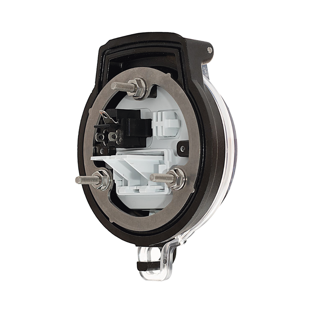 Dispositivo Circular de Puertos de Acceso a Datos, Con Dos Espacios Para Módulos Mini-Com y Un Receptáculo NEMA 5-15R, Protección IP66, de 3″ de Diámetro