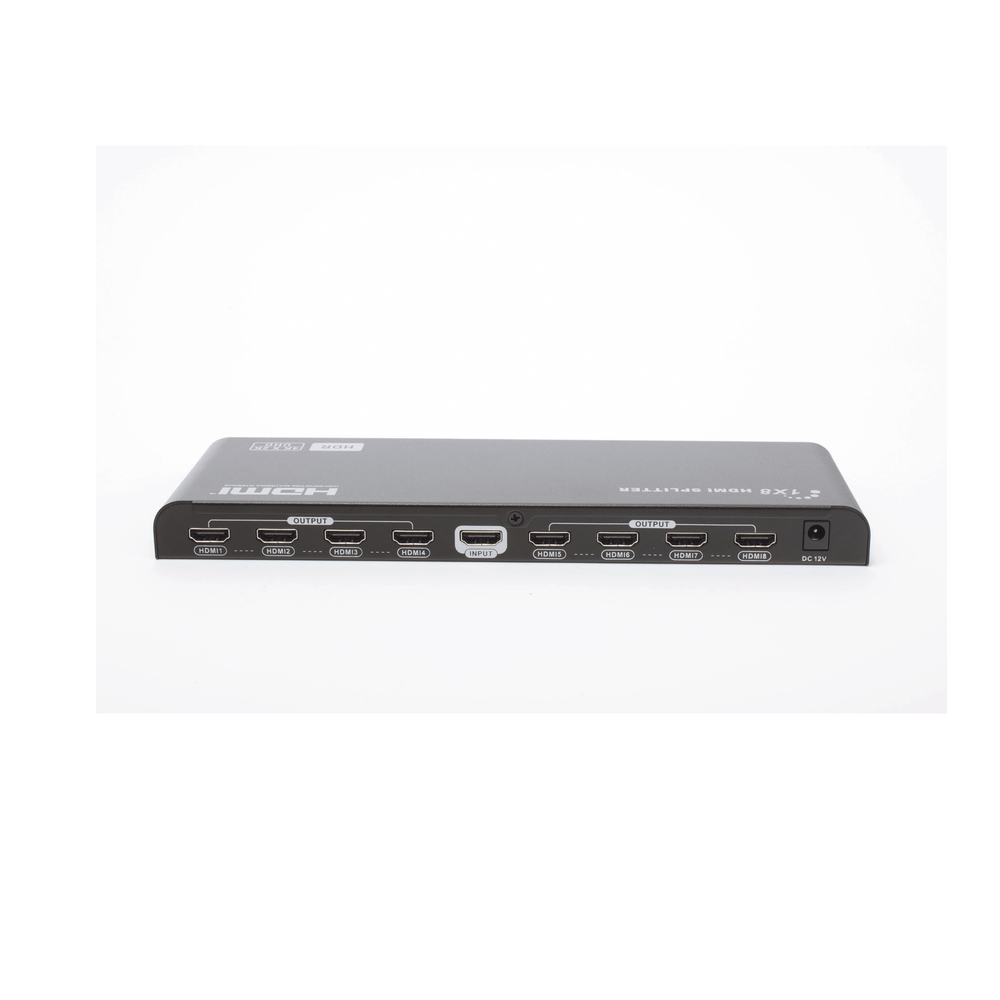- Distribuye 1 señal HDMI a 8 monitores HDMI