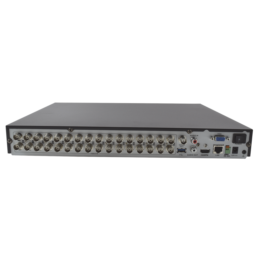 DVR 4 Megapixel / 32 Canales TURBOHD + 8 Canales IP / 2 Bahías de Disco Duro / 1 Canal de Audio