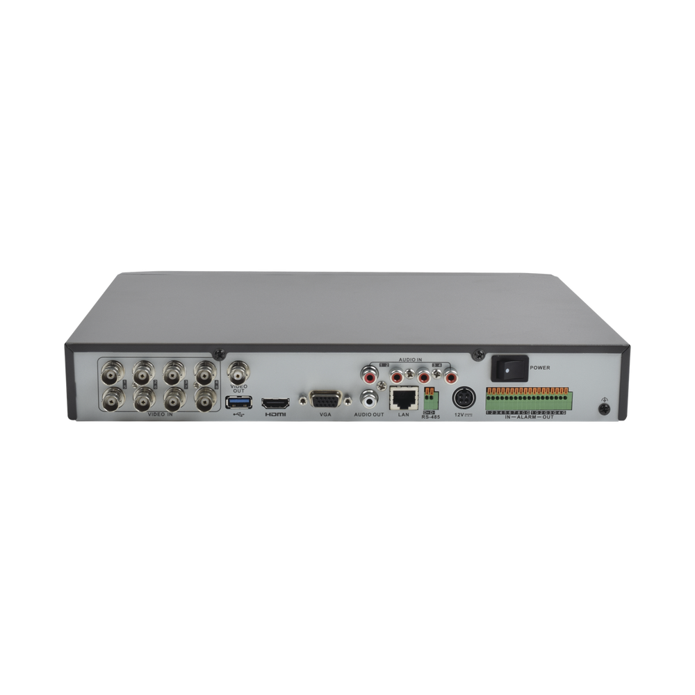 DVR 8 Megapixel / 8 Canales 4K TURBOHD + 8 Canales IP / 1 Bahía de Disco Duro / 4 Canales de Audio / 8 Entradas de alarma / Vídeoanálisis