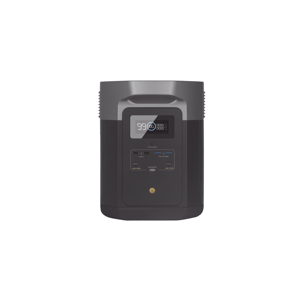 EcoFlow DELTA 2 MAX | Estación de Energía Portátil 2048Wh Litio LFP / 6 AC 2400 W (Max. 3400W) / 2 USB-C 100W / Capacidad para Aumentar Respaldo / Soporta Cargador de Coche 10A a 12.6V / Conectividad WiFi y Bluetooth (App) / Carga Sol