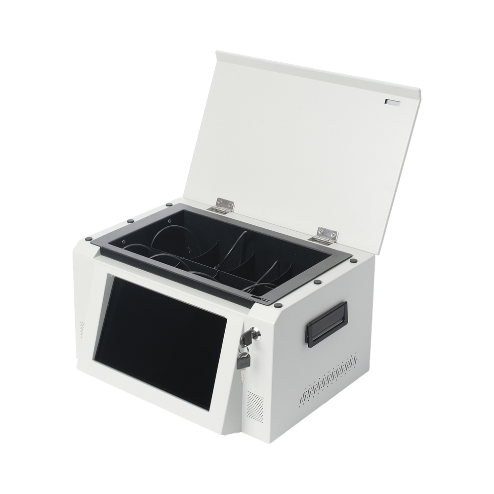 Estación para BodyCam, realiza la descarga de información y carga de batería simultáneamente, la estación se conecta por Ethernet para la descarga de información a el servidor central dedicado (FTP).
