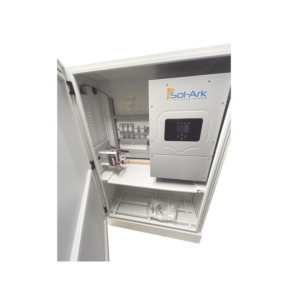Estacion de Inversor Hibrido de 8 kW con 4 Baterías de 5.12Kwh y Gabinete