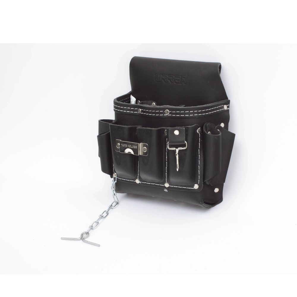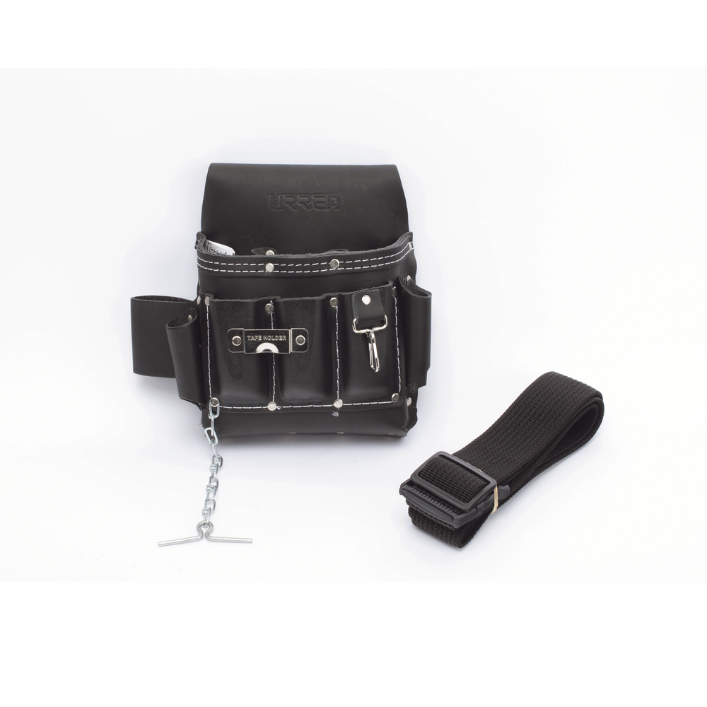 Estuche porta herramienta de piel con cinturón, con 10 bolsillos, medidas 25.4 x 25.4 cm.
