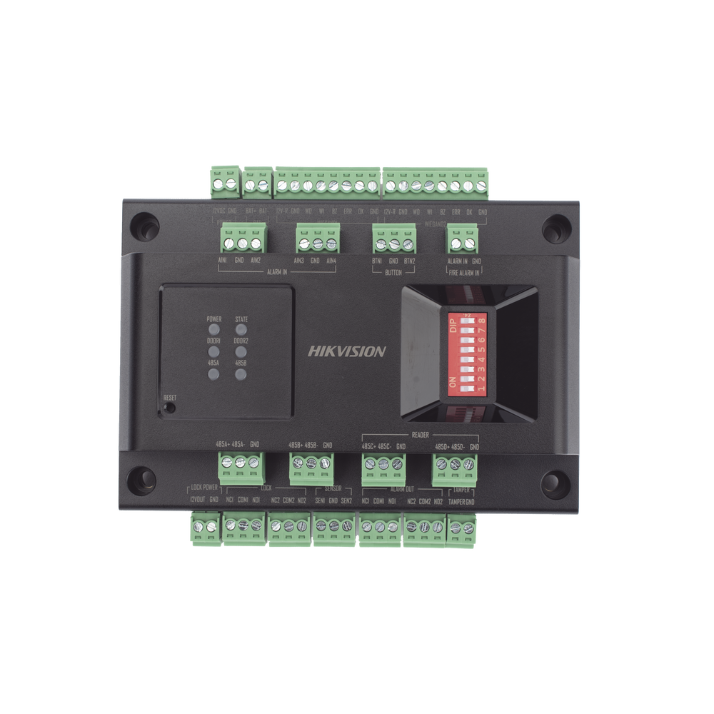 Expansor de 2 Puertas para Paneles de Control de Acceso DS-K27 Series / Comunicación RS-485 / 4 Entradas y 2 Salidas Auxiliares